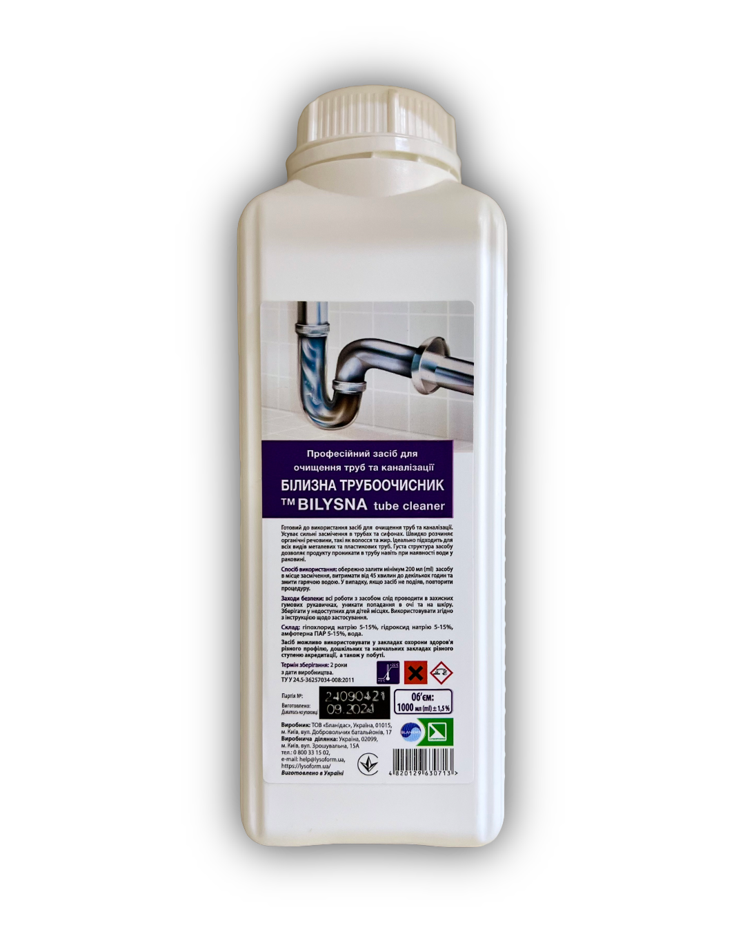 Професійний засіб для очищення труб та каналізації «Білизна трубоочисник (™ Bilysna tube cleaner)»