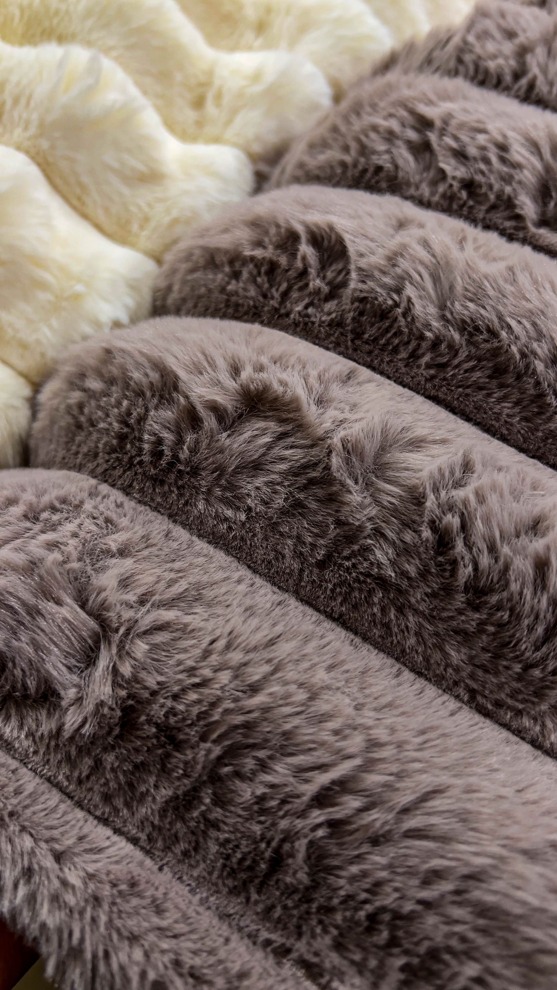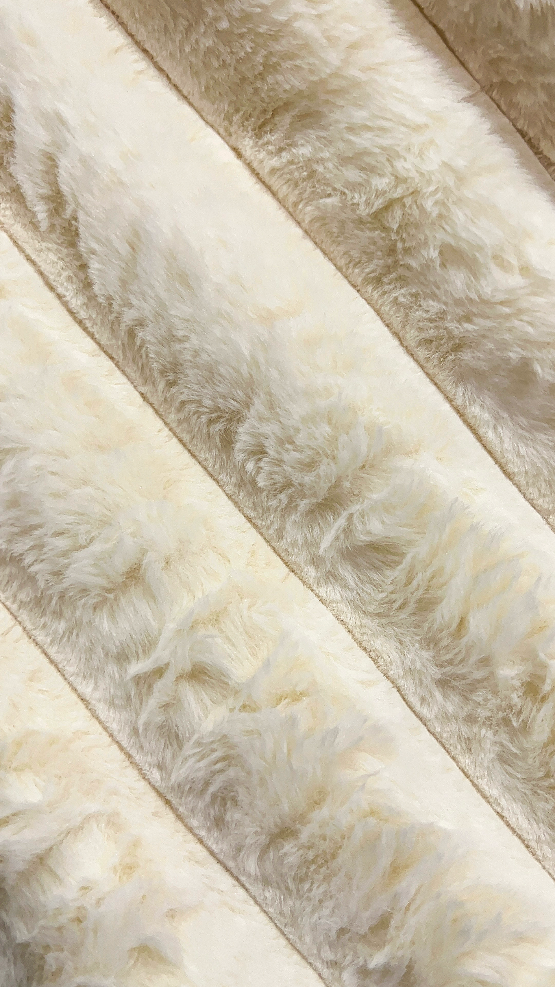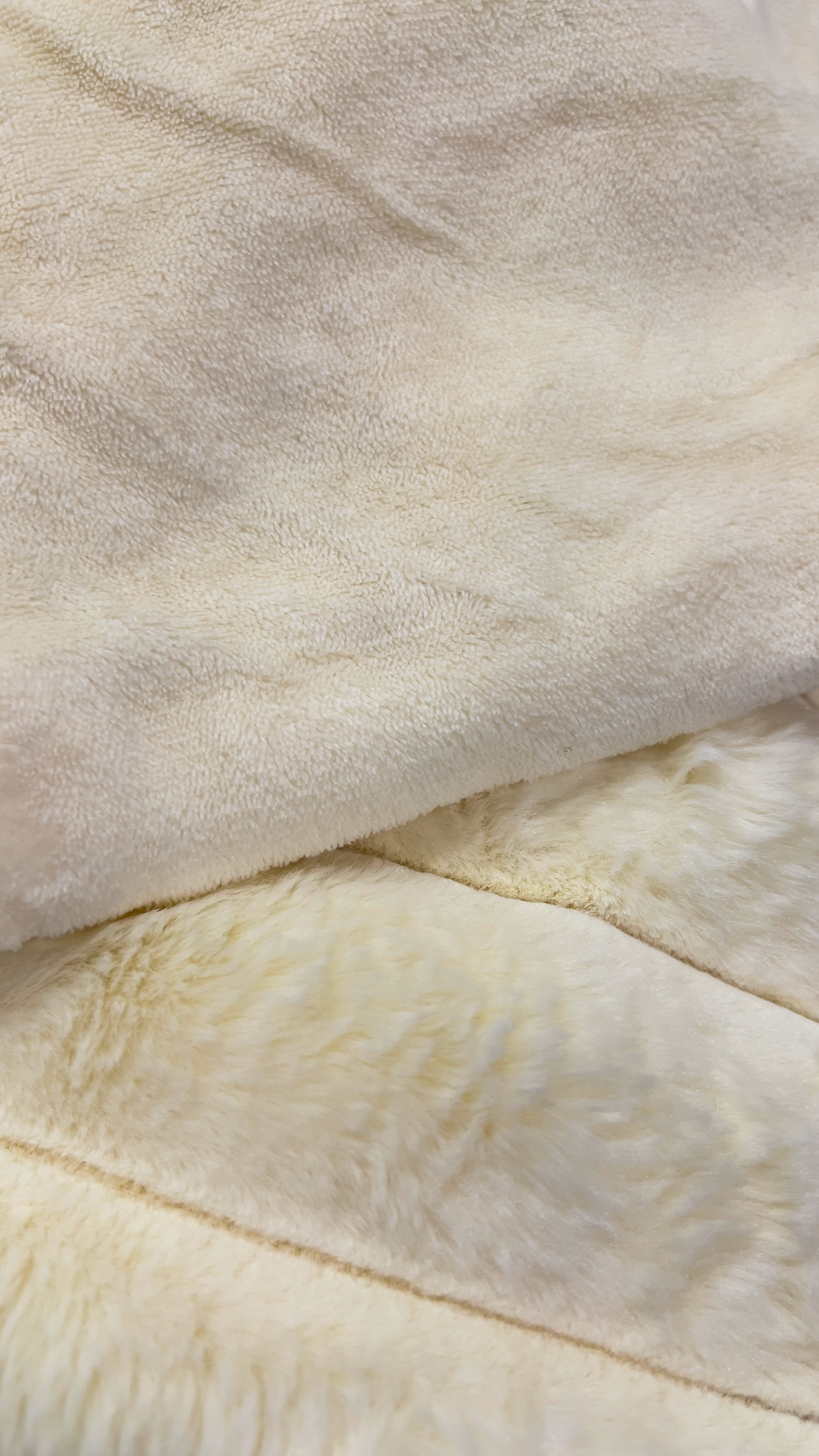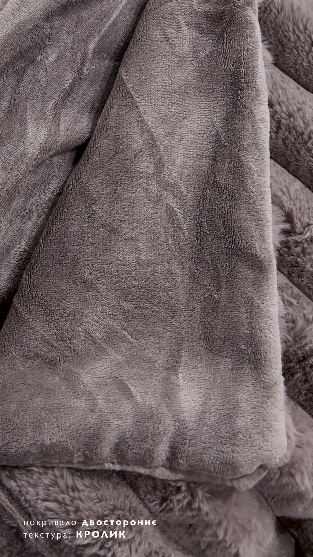 Матеріал: 100% синтетичний преміум матеріал. Двостороння текстура: лицьова — «кролик» (м’який ворс, щільно набитий ворс), зворотна — мікрофібра.