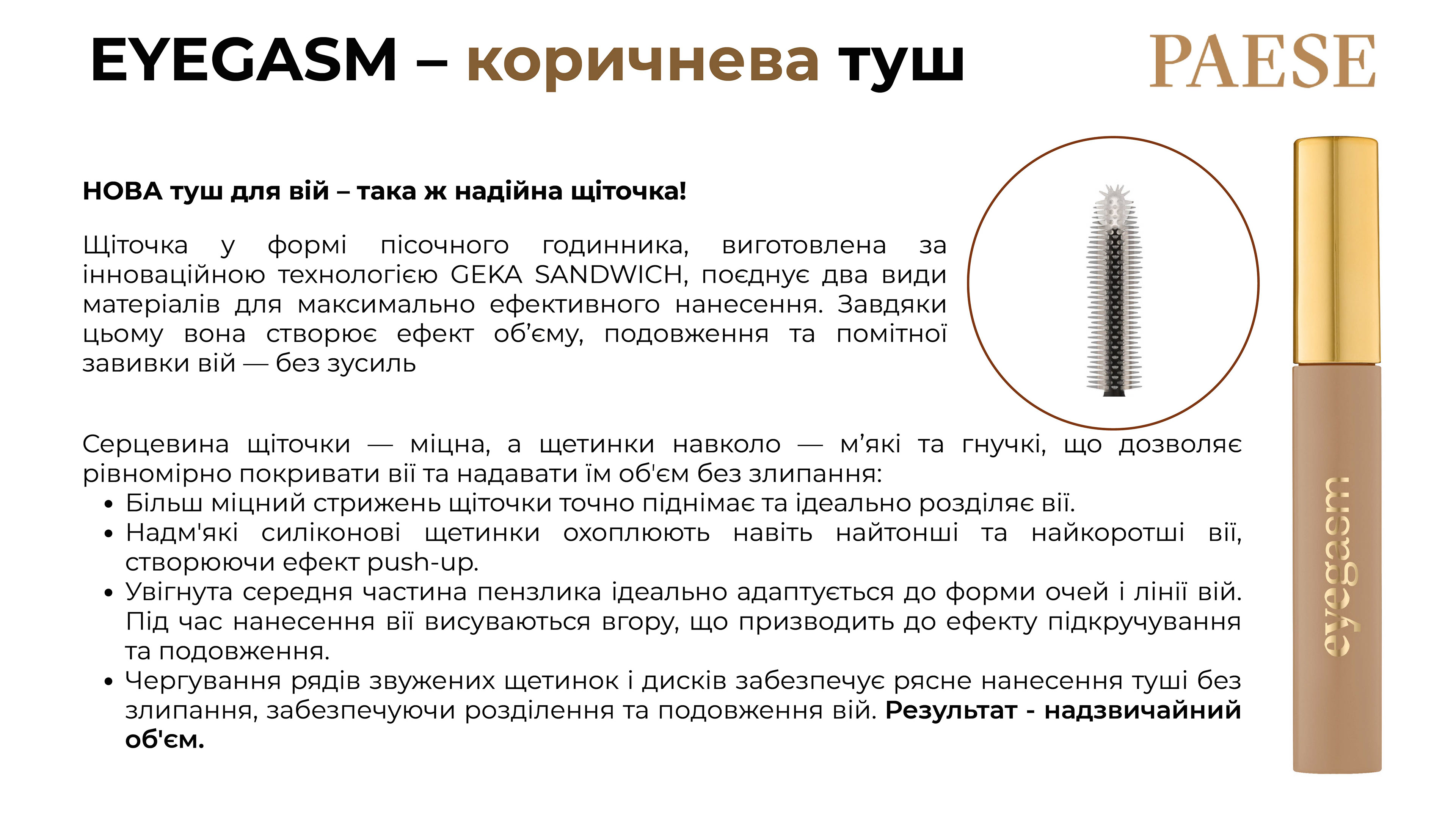 PS ТУШ ДЛЯ ВІЙ ЕКСТРЕМАЛЬНИЙ ОБ'ЄМ/ДОВЖИНА/ПІДКРУЧЕННЯ EYEGASM BROWN 8МЛ