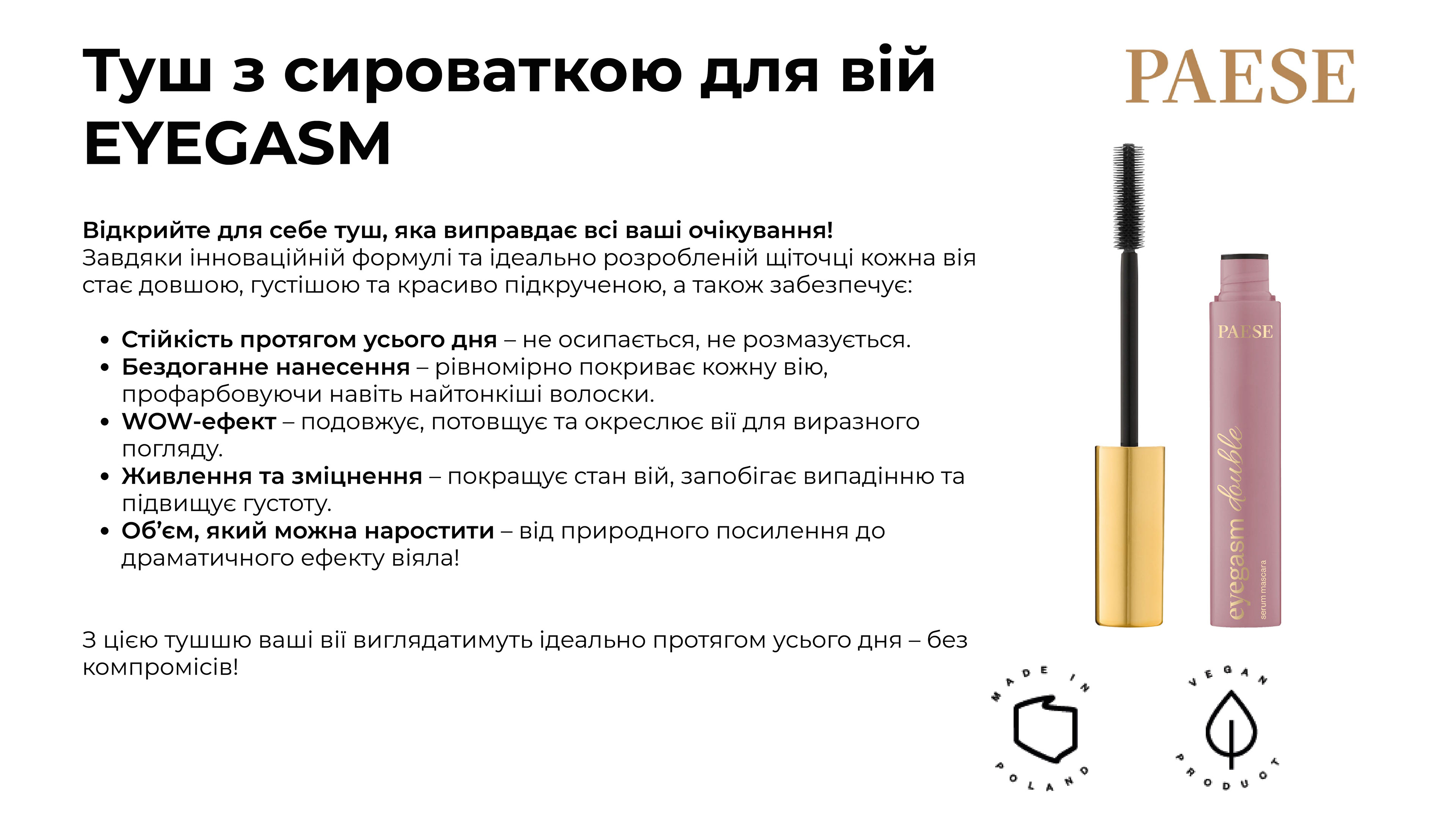 PS ТУШ ДЛЯ ВІЙ ПОДОВЖУЮЧА З СИРОВАТКОЮ EYEGASM DOUBLE SERUM BLACK 9МЛ