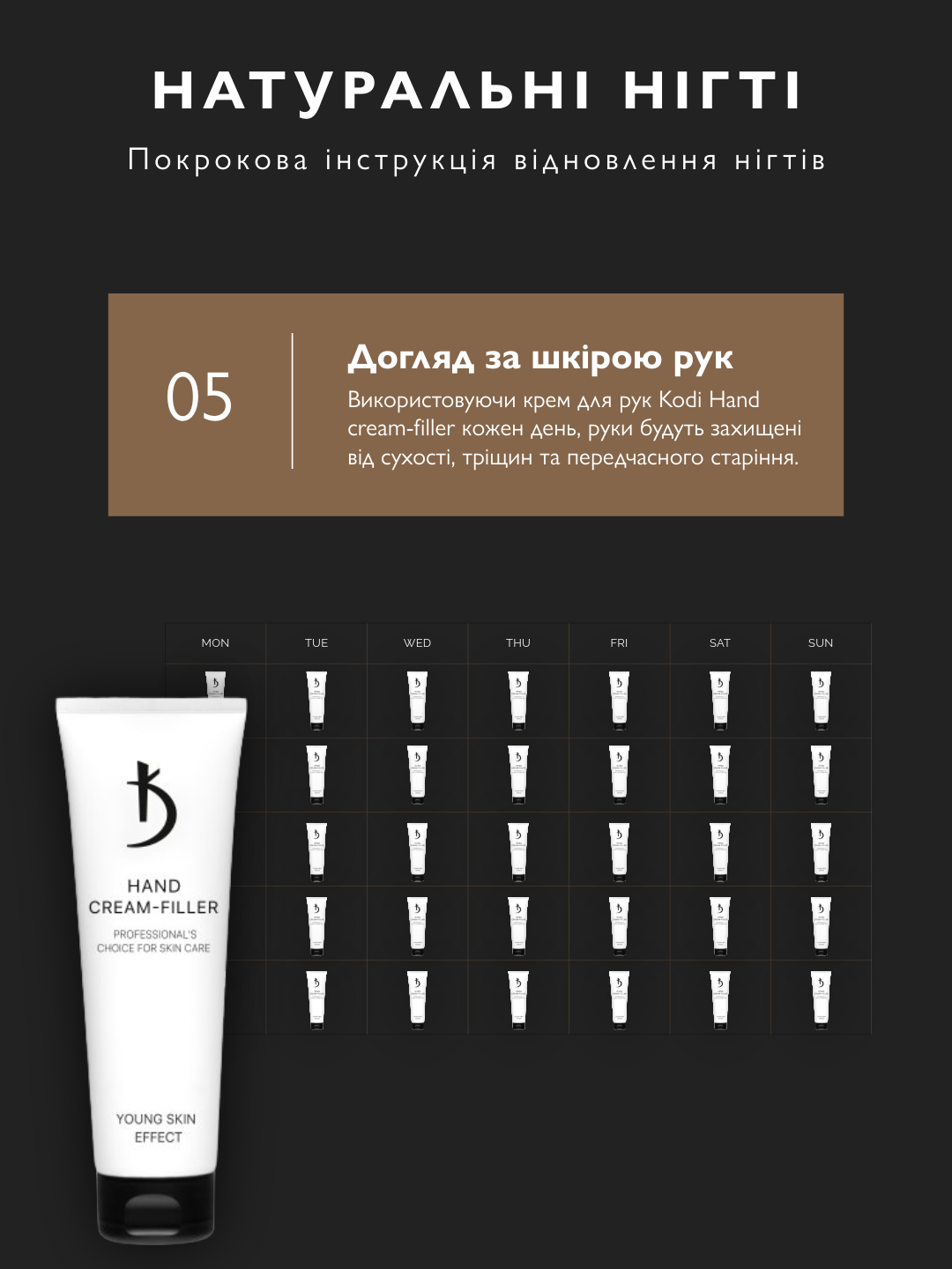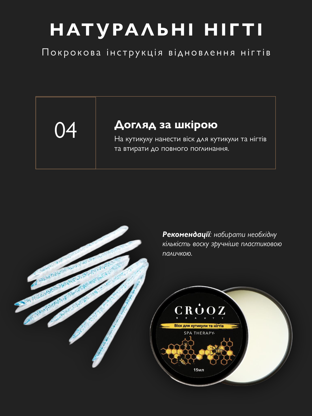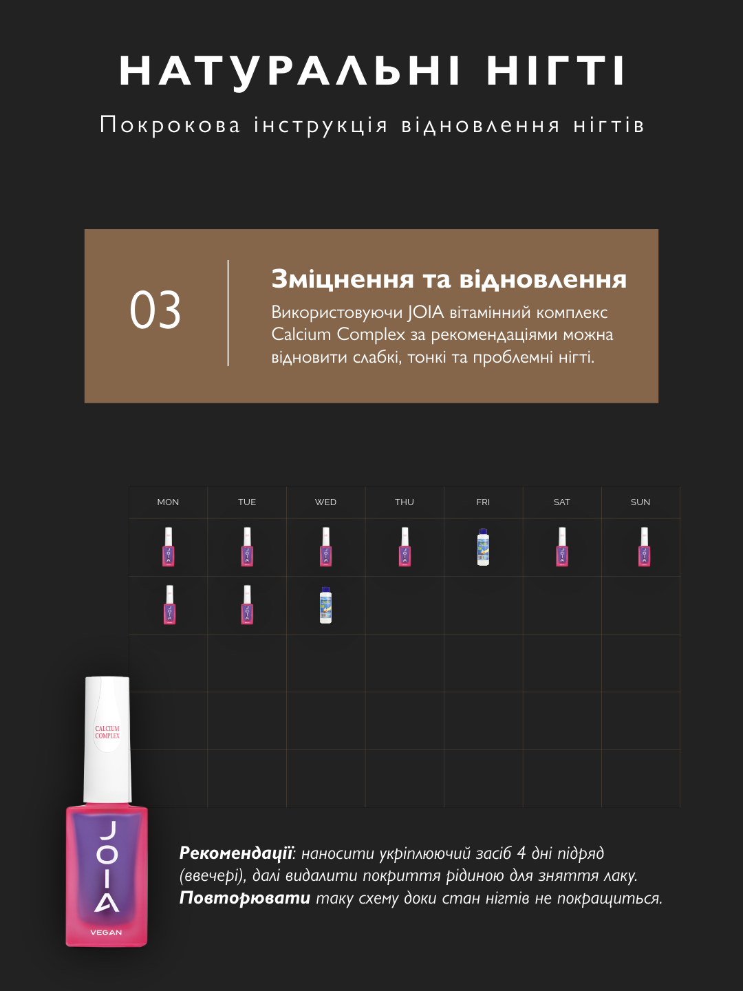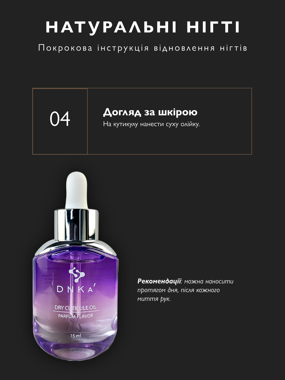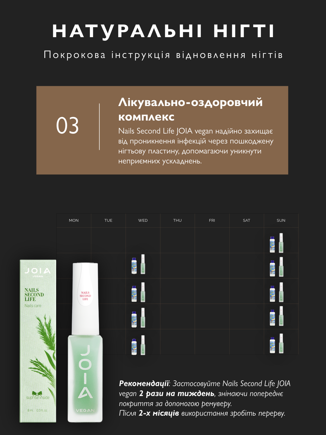 Від зняття покриття до зволоження кремом. Нігті набувають блиску за 10 днів.
