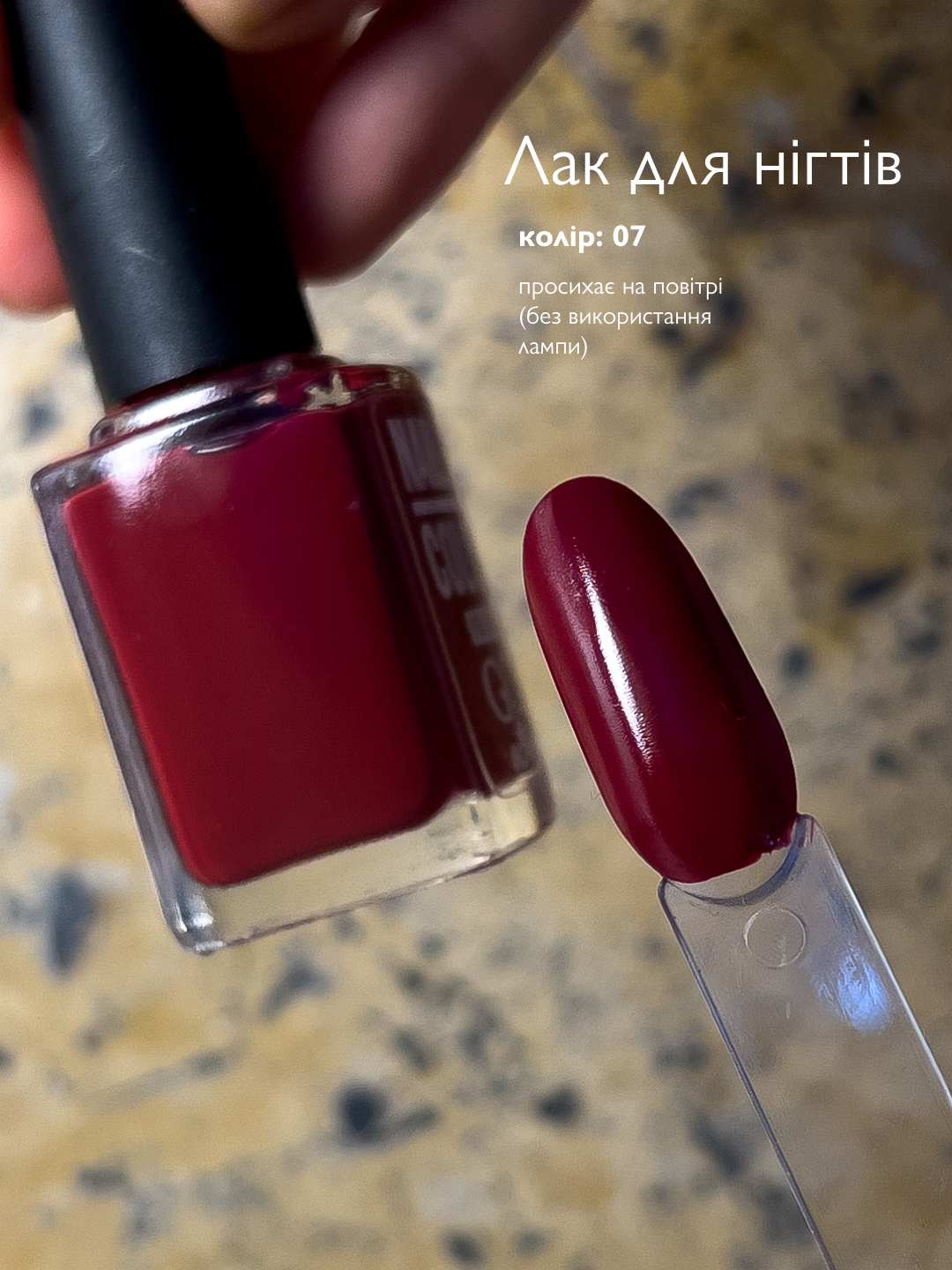 - Не псує ніготь
