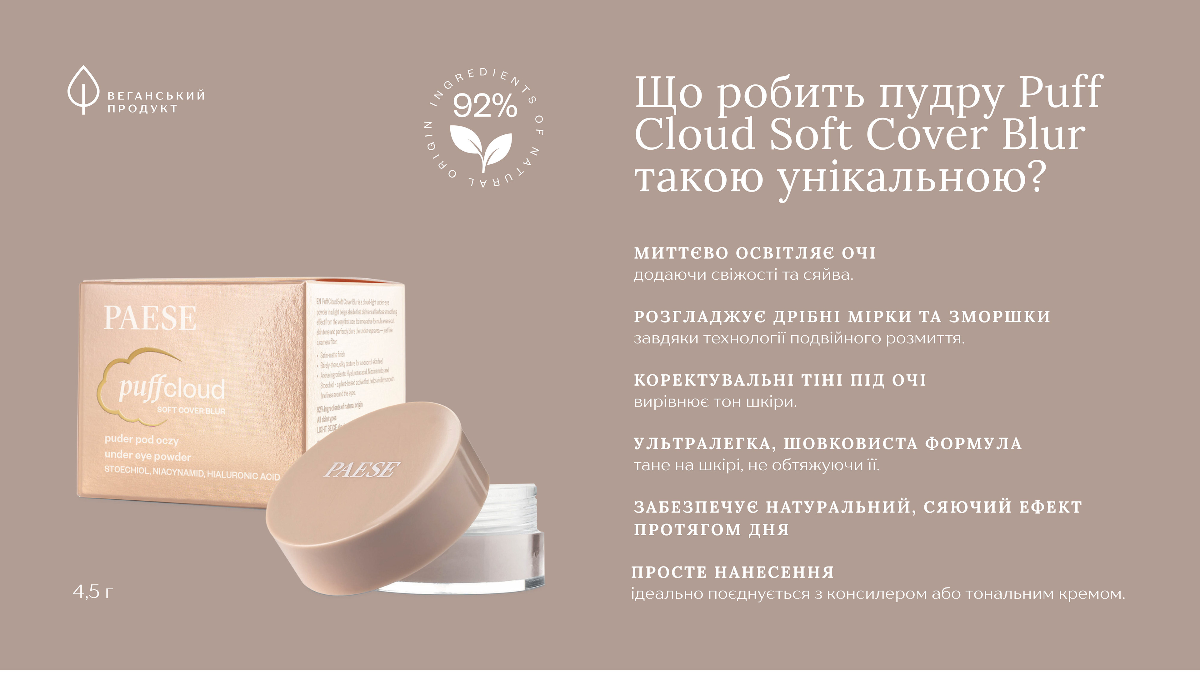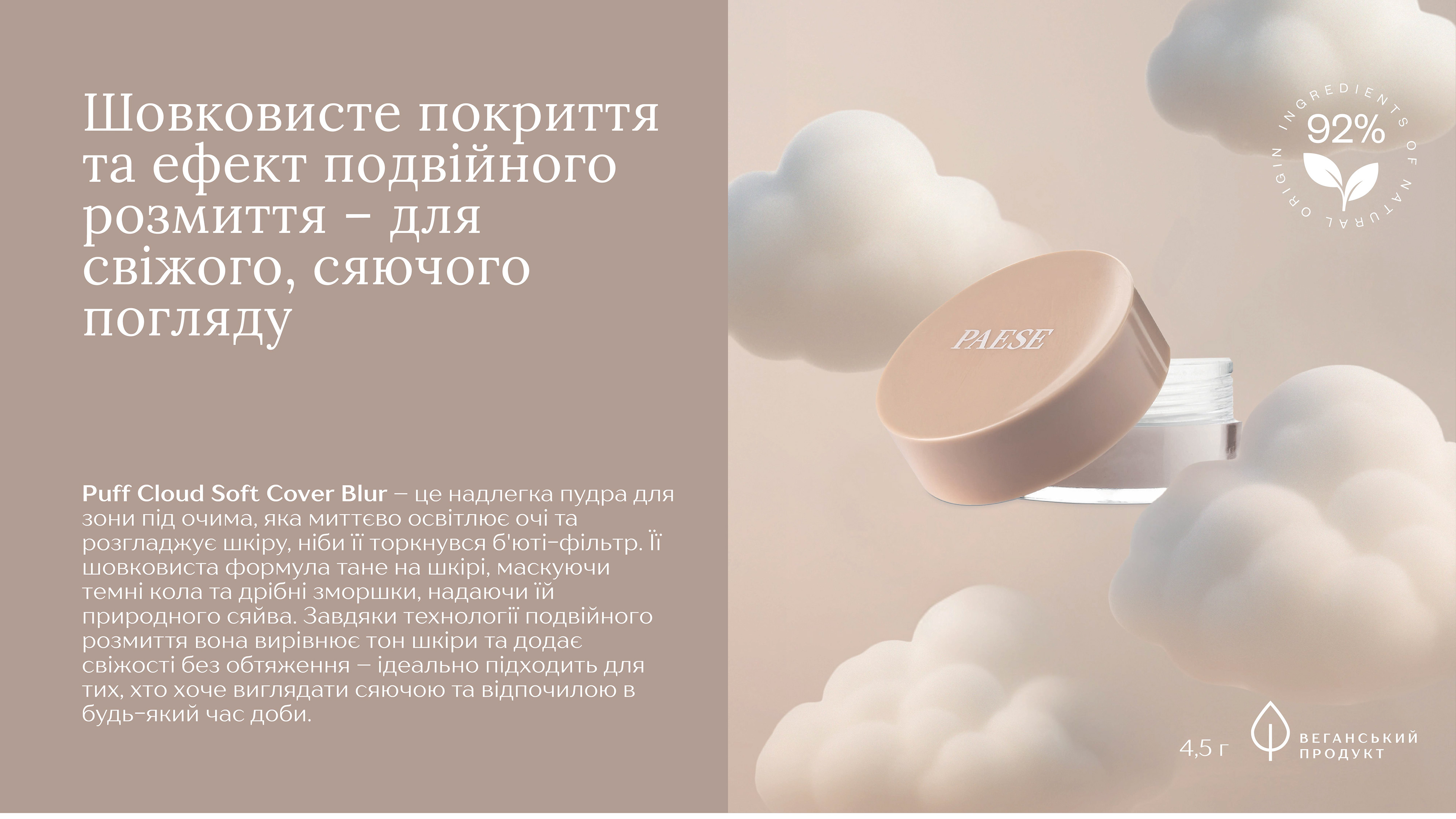 PS ПУДРА РОЗСИПЧАСТА ДЛЯ ОБЛАСТІ НАВКОЛО ОЧЕЙ PUFF CLOUD SOFT COVER BLUR LIGHT BEIGE 4,5Г