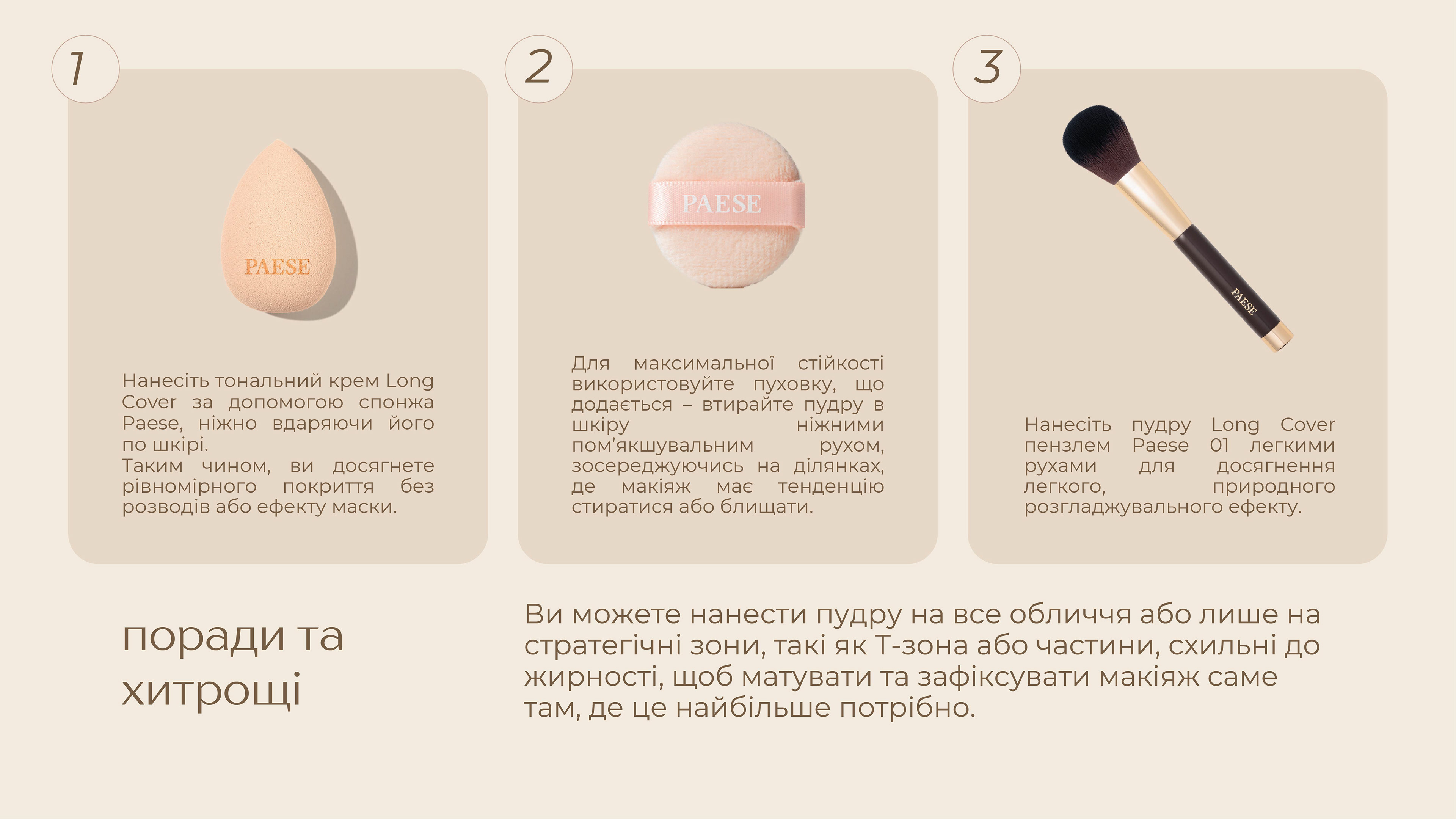 Універсальність: підходить для розсипчастих і пресованих пудр.