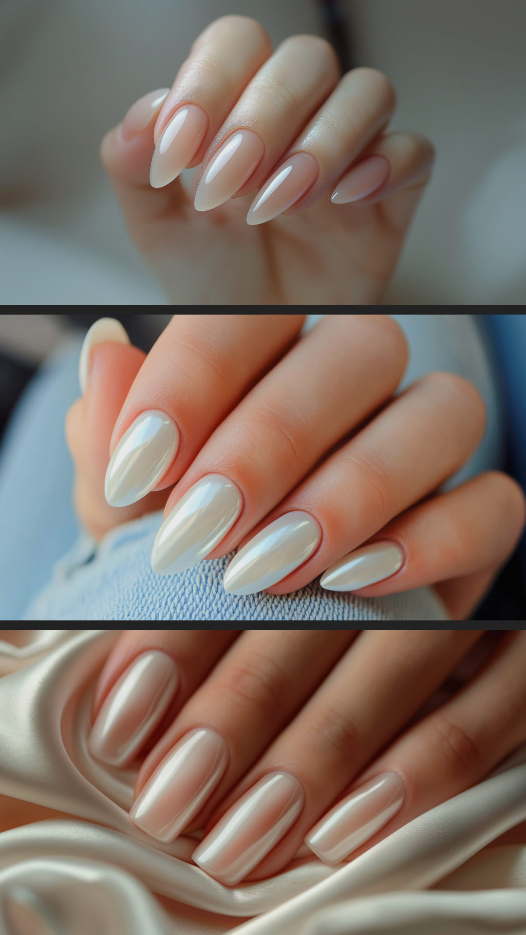 Манікюр з ефектом перлини — це символ інтелігентної розкоші та природної краси. Перламутрові гель-лаки, втирки та пасти створюють м’яке сяйво, схоже на поверхню натуральної перлини, даруючи руках відчуття невимушеного шику.