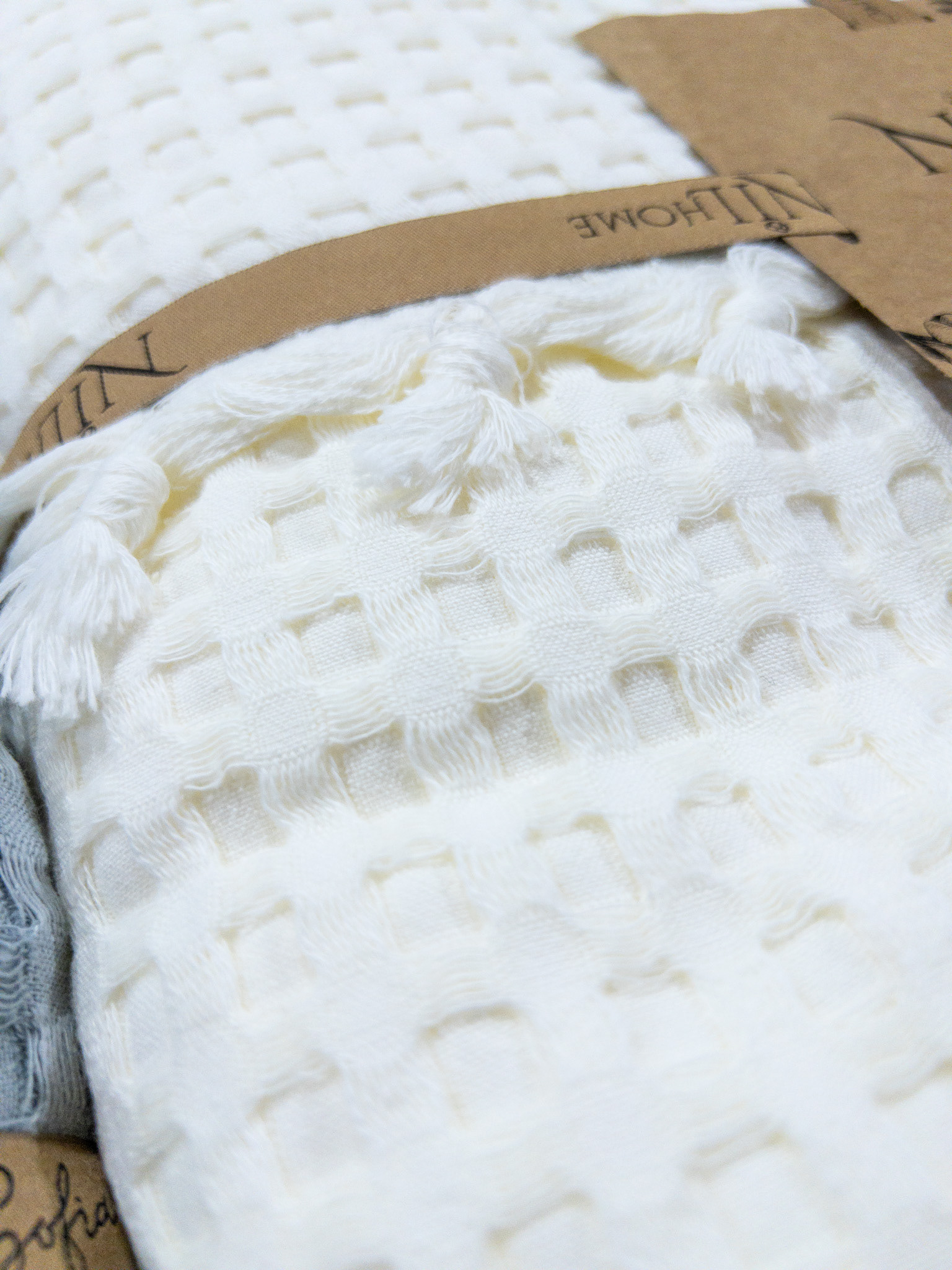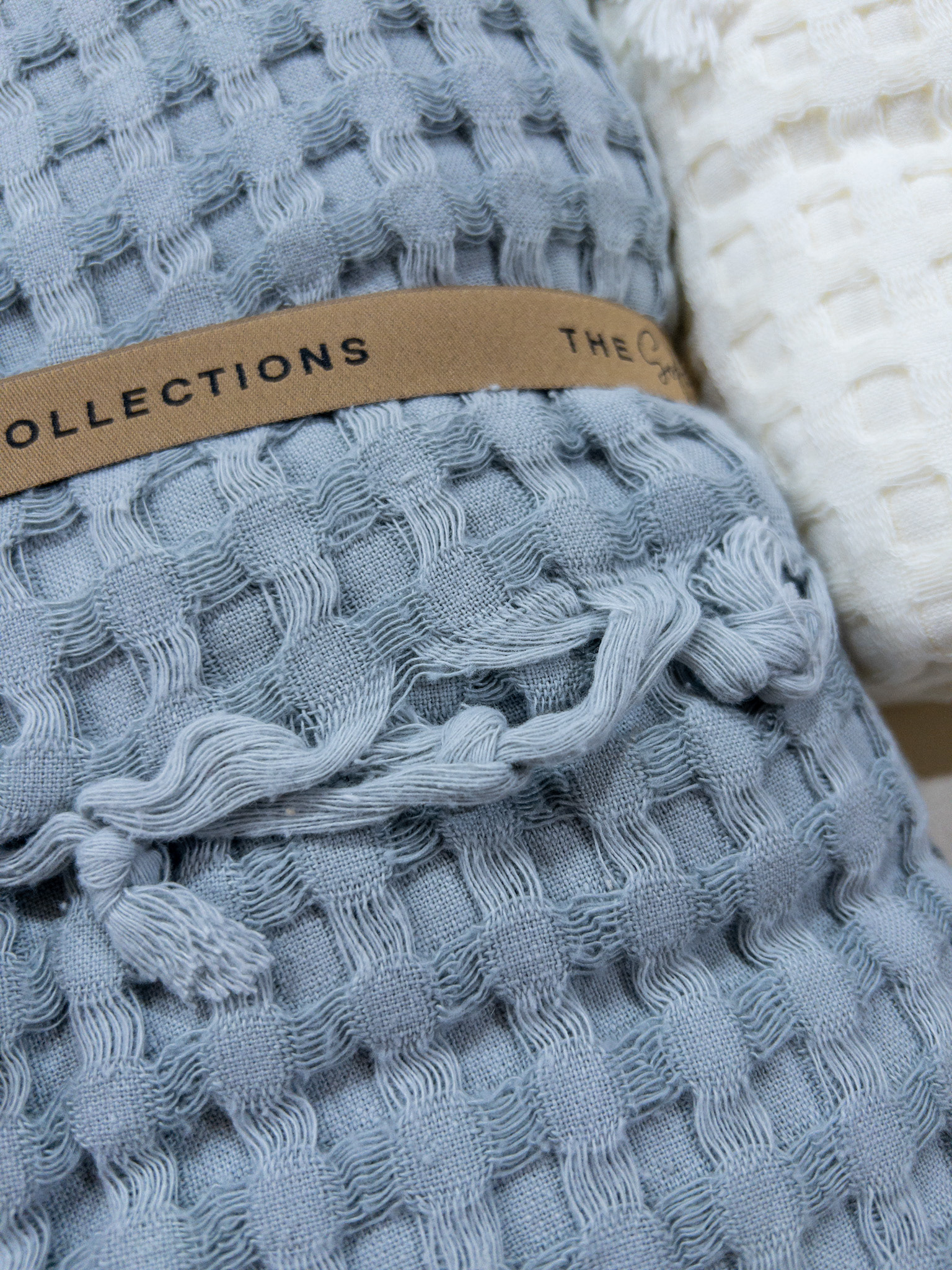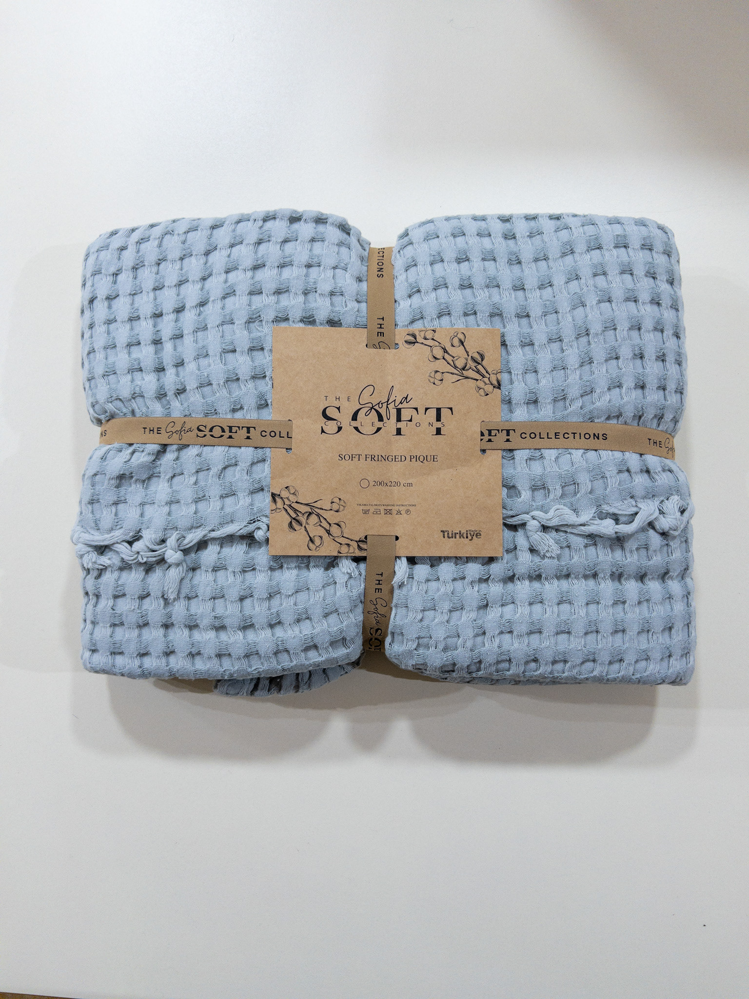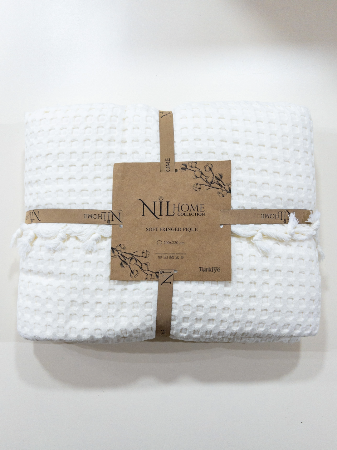 Плед-покривало виготовлено з натурального мусліну — легкої, дихаючої бавовняної тканини, яка вирізняється особливою м’якістю й структурною фактурою. Муслін має приємний матовий блиск, м’які переплетення на поверхні, делікатний об’єм, що робить плед легким, невагомим і водночас теплим.