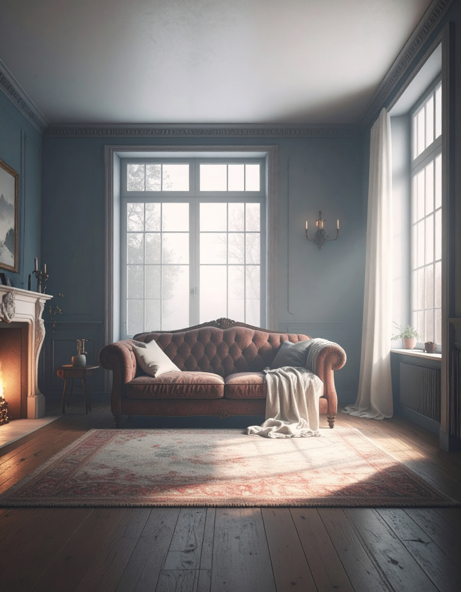 Обидва відтінки (білий та блакитний) створюють у просторі атмосферу чистоти й спокою, а однотонність і тактильна фактура додають інтерʼєру сучасності та стриманої розкоші.