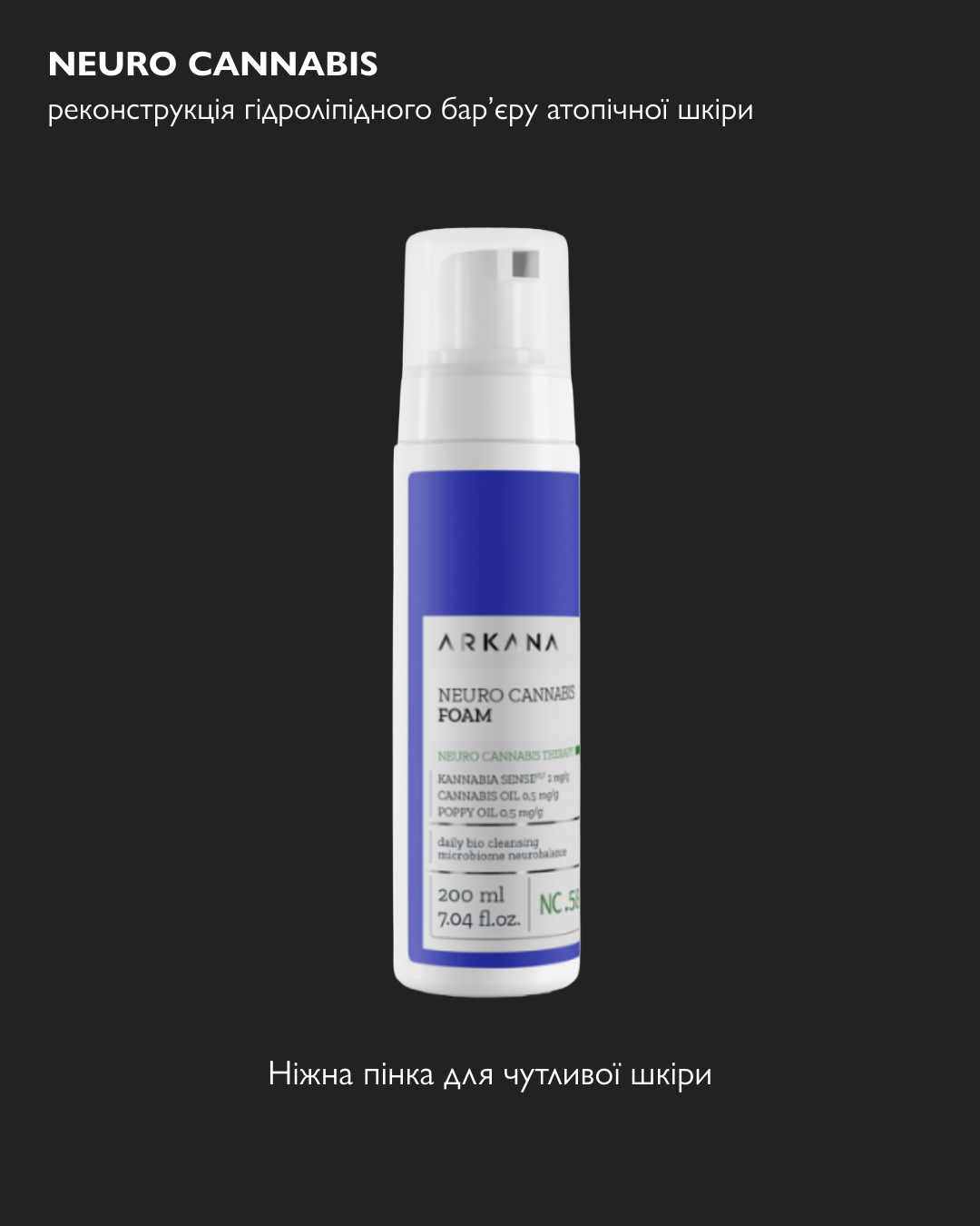 NEURO CANNABIS Очищуюча пінка з дуже ніжним складом. Чудово видаляє макіяж. Екологічно сертифіковано. Містить інноваційний активний інгредієнт Kannabia Sense та олію насіння маку.