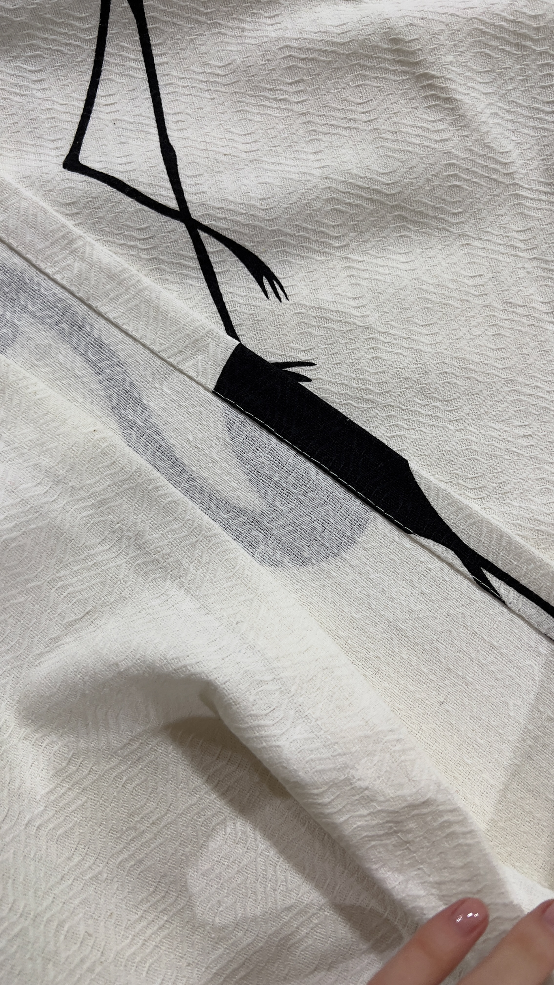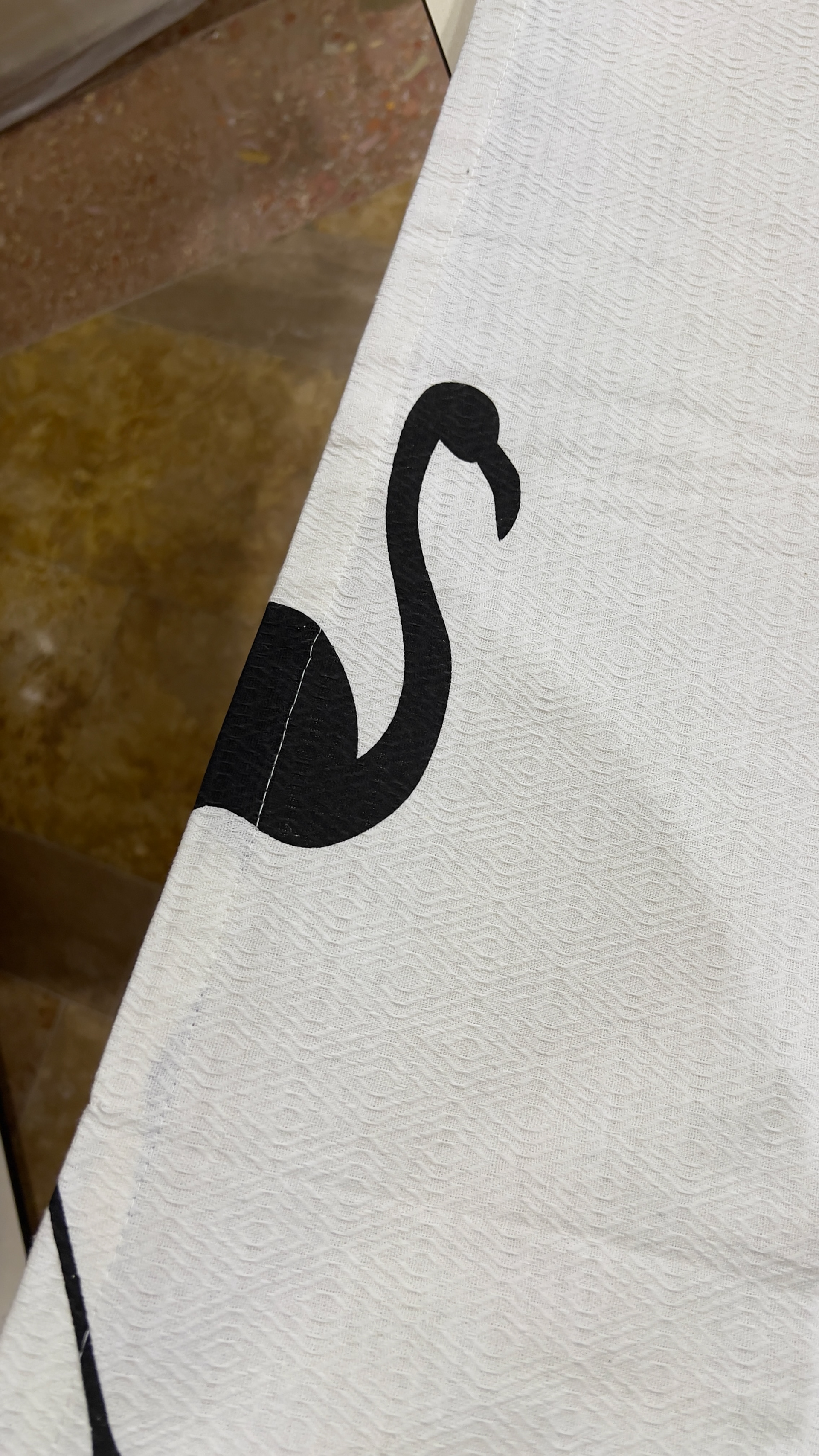 Зустрічайте справжню текстильну розкіш – плед-покривало з бавовни і вафельною текстурою, декорований силуетом чорного фламінго. Його матеріал дихає, тішить шкіру, а дизайн об’єднує природну стриманість із графічною експресією.