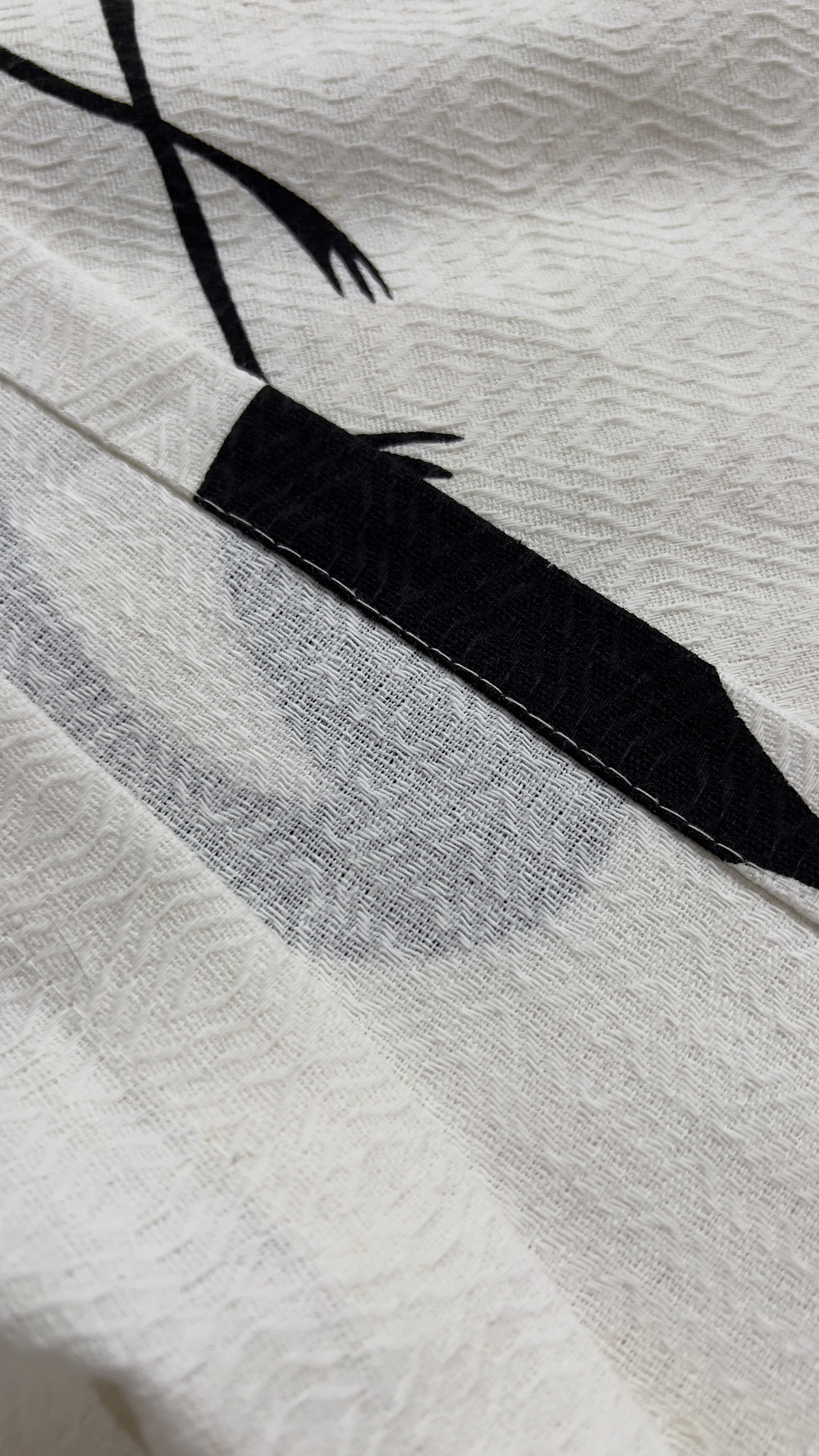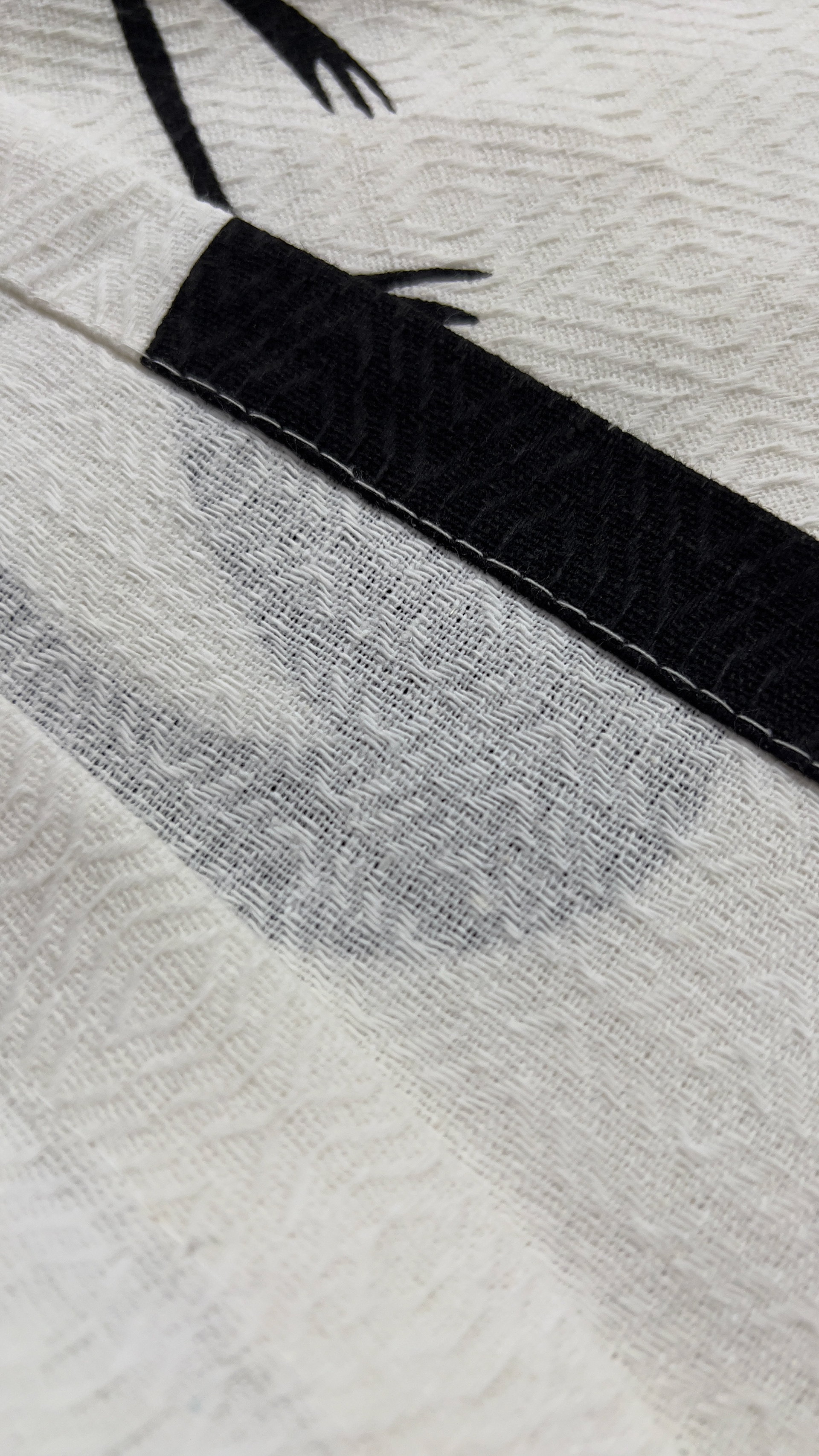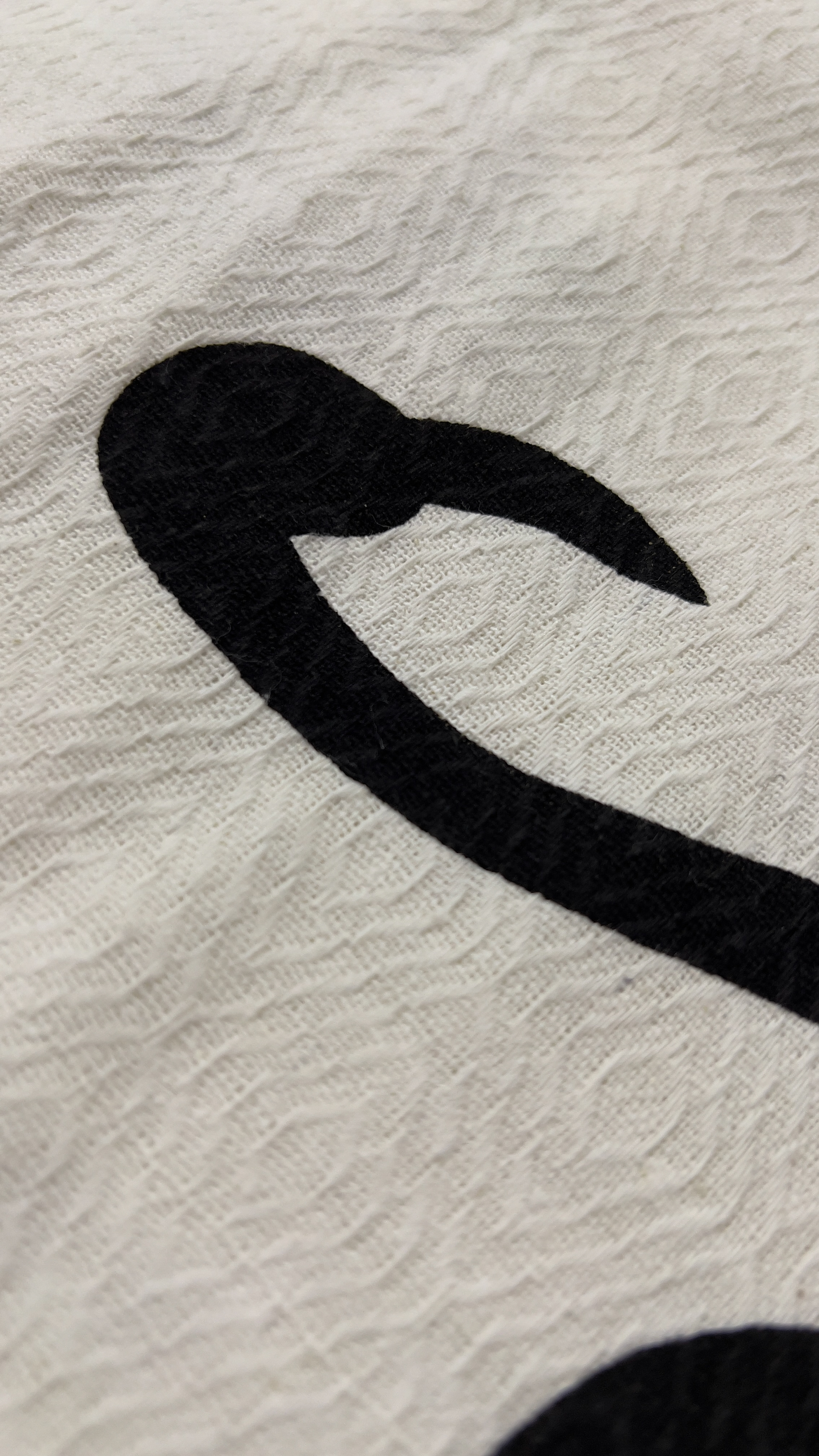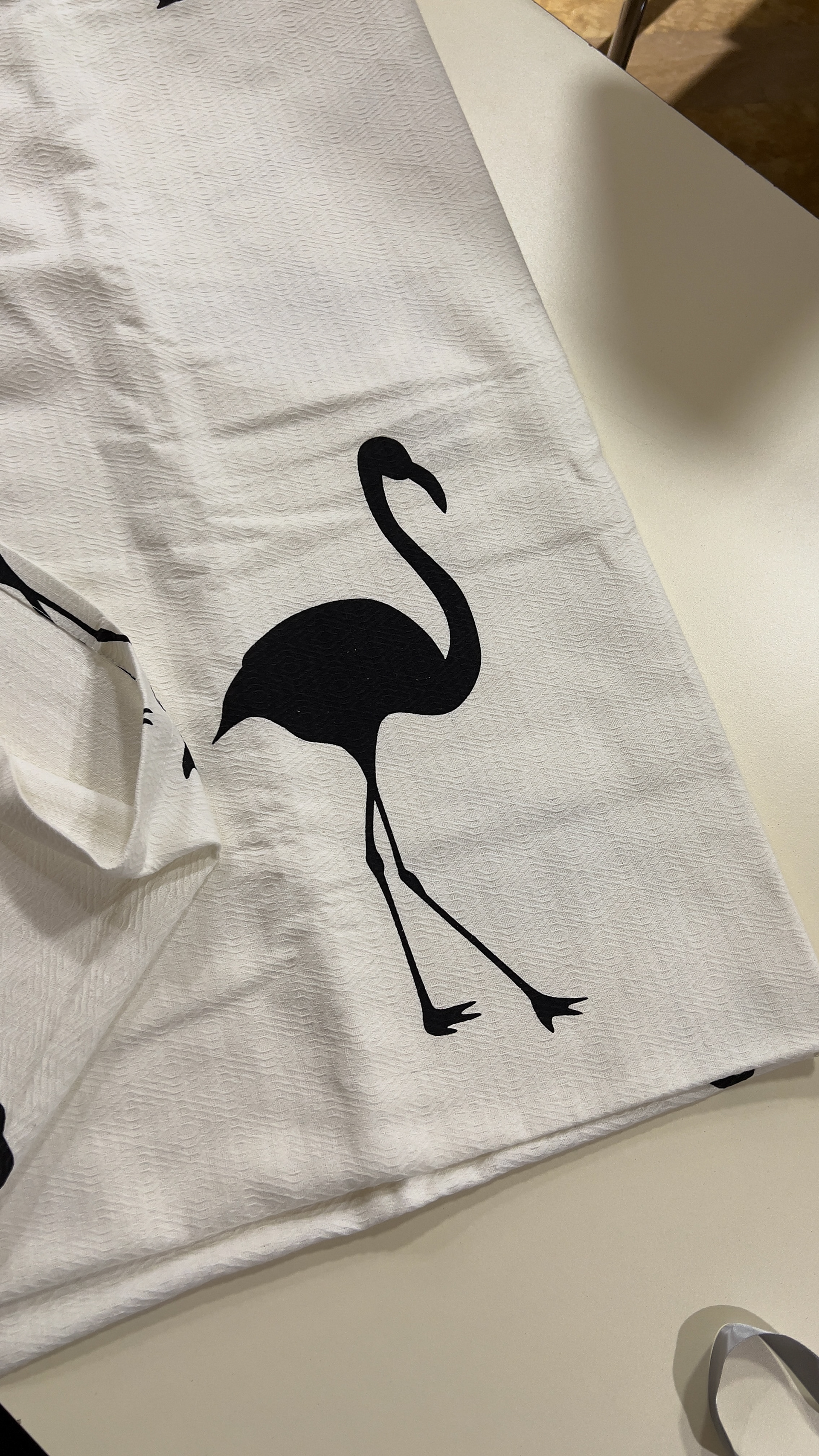 Плед виготовлений із 100% натуральної бавовни. Вафельна текстура забезпечує особливу повітропроникність і терморегуляцію — плед «дихає», швидко сохне і дарує легкість відчуттів незалежно від пори року. Візерунок чорний фламінго — це поєднання мінімалізму та сучасної графіки, яке створює стильний арт-акцент і надає виробу характеру та візуальної свіжості.