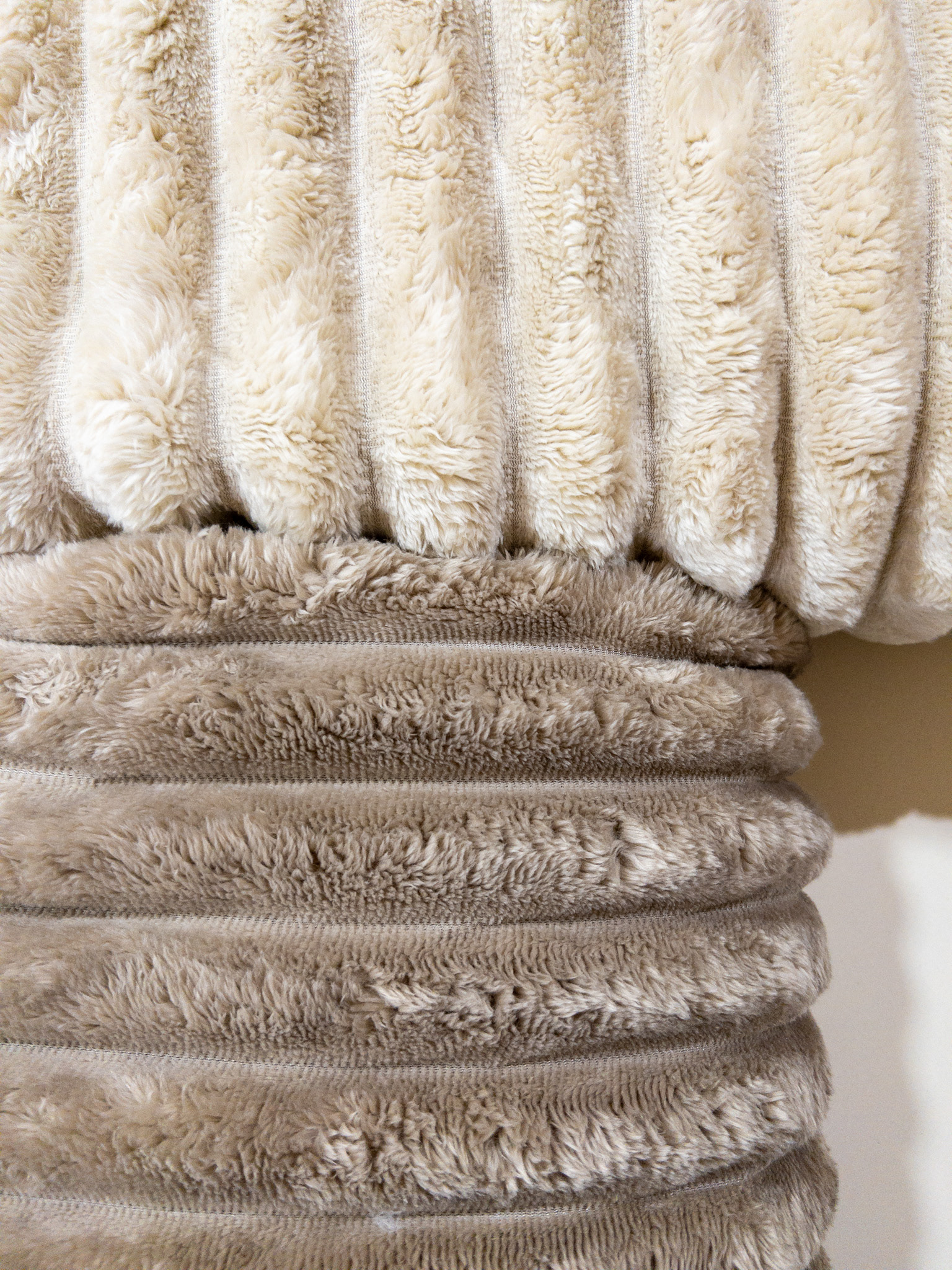 Мікрофібра — це новітній синтетичний матеріал із надзвичайною м’якістю, легкістю та теплозберігаючими властивостями. Текстура «шарпей» у вигляді рельєфних полосок виконує не лише естетичну функцію, але й полегшує циркуляцію повітря, швидше зігріває та сприяє рівномірному розподілу тепла. Така поверхня приємна на дотик, не скочується і не накопичує пил.