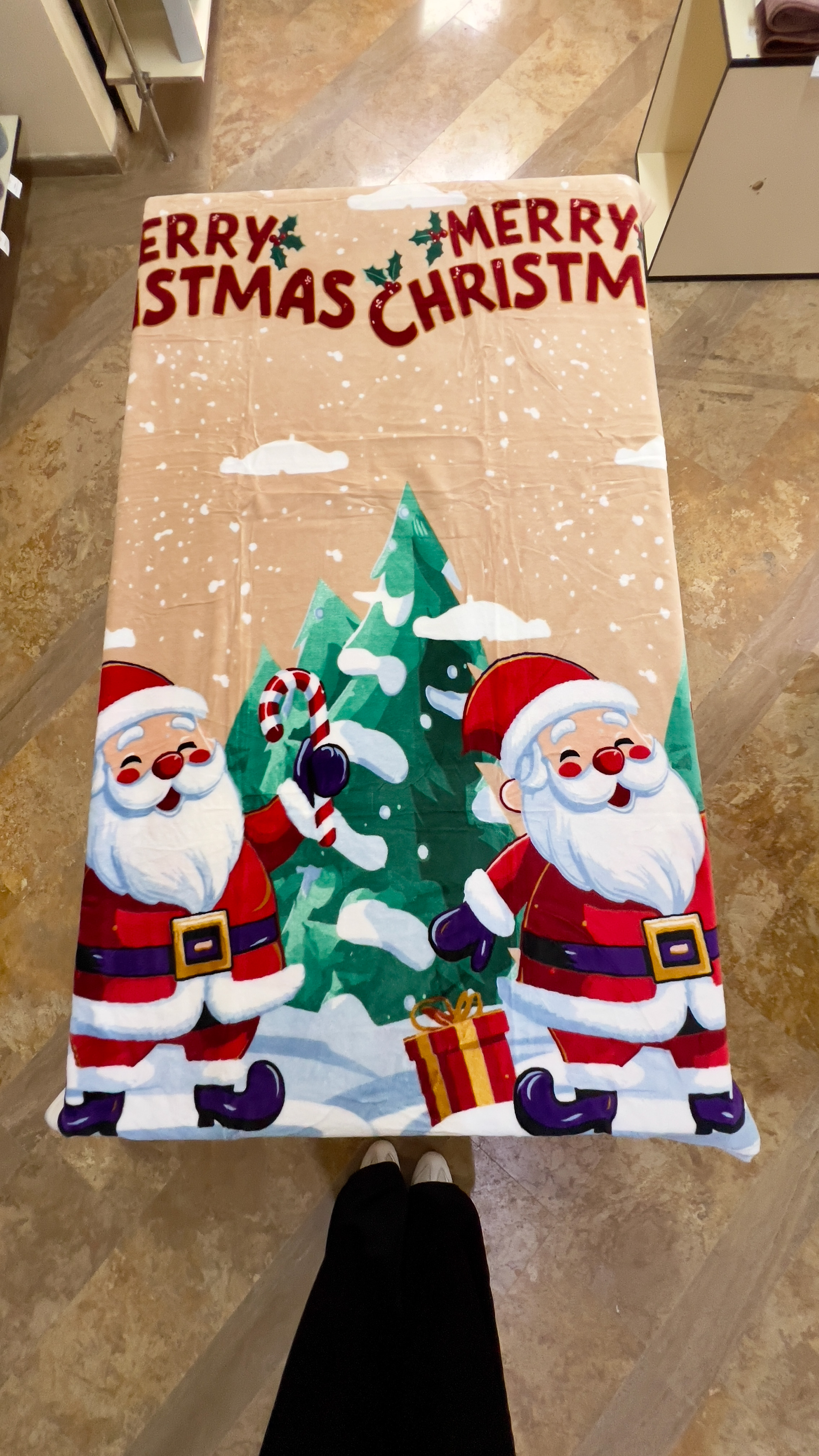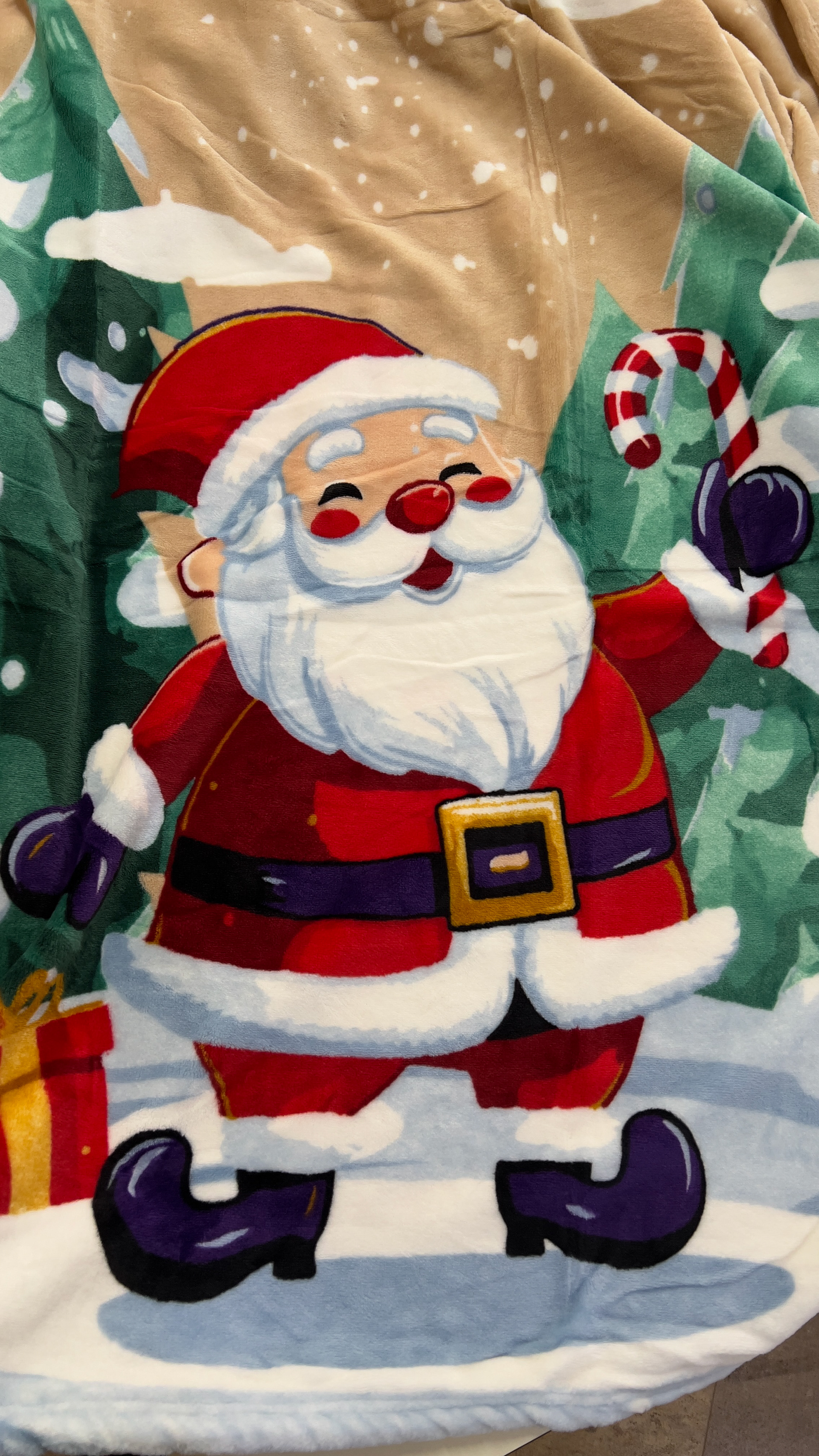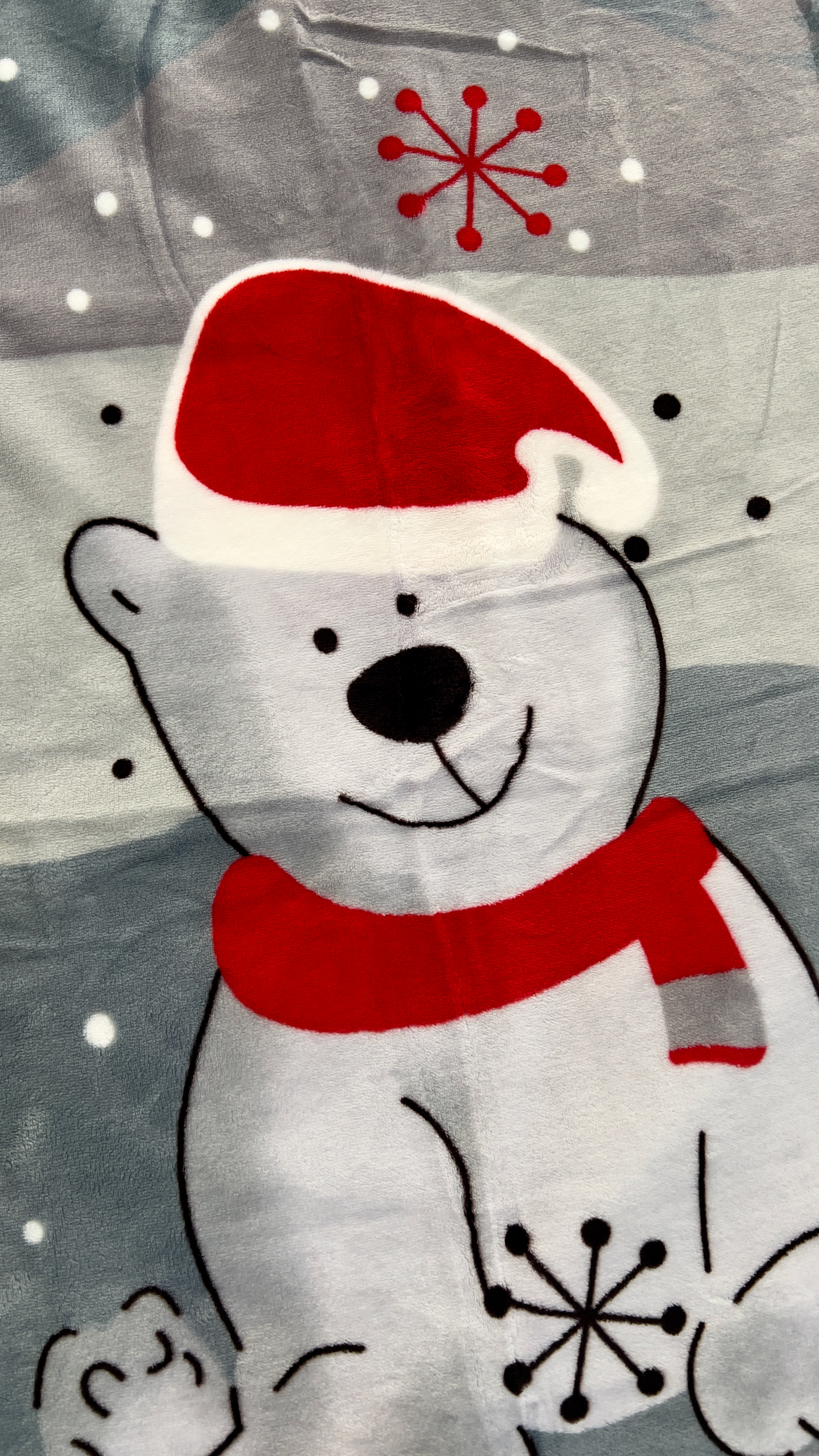 Яскраві святкові малюнки — ведмедик у шапці, усміхнений Санта-Клаус — стають справжнім декором, приносять у оселю радість, посмішки і світло. Плед легко впишеться у будь-який стиль інтер’єру й стане ідеальним подарунком для тих, ким ви хочете поділитися щастям, затишком та святковою турботою.