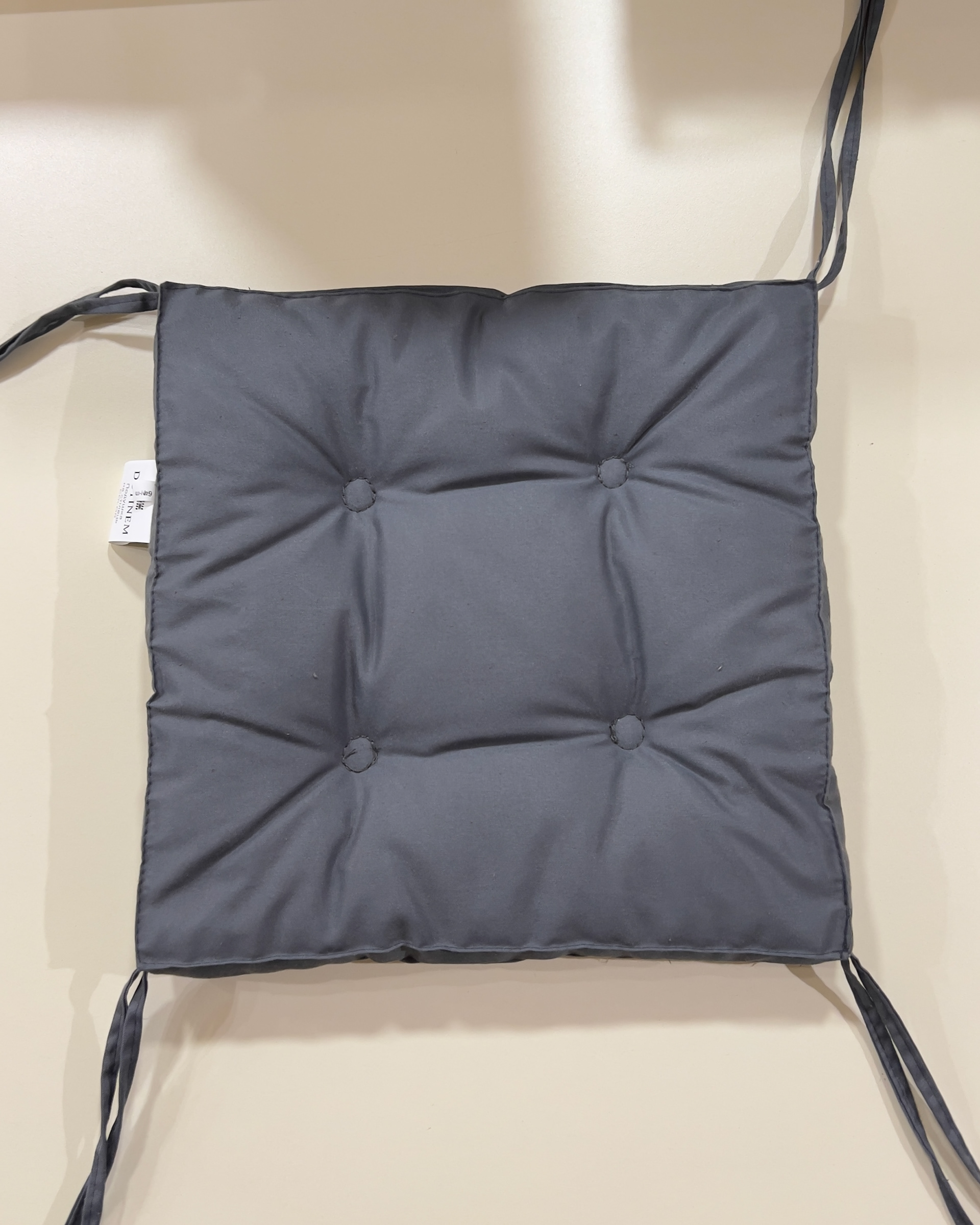 Чотири зав’язки по кутах надійно фіксують подушку до стільця. Вона не ковзає, не сповзає під час рухів, поворотів, особливо на гладких поверхнях або стільцях без спинки.