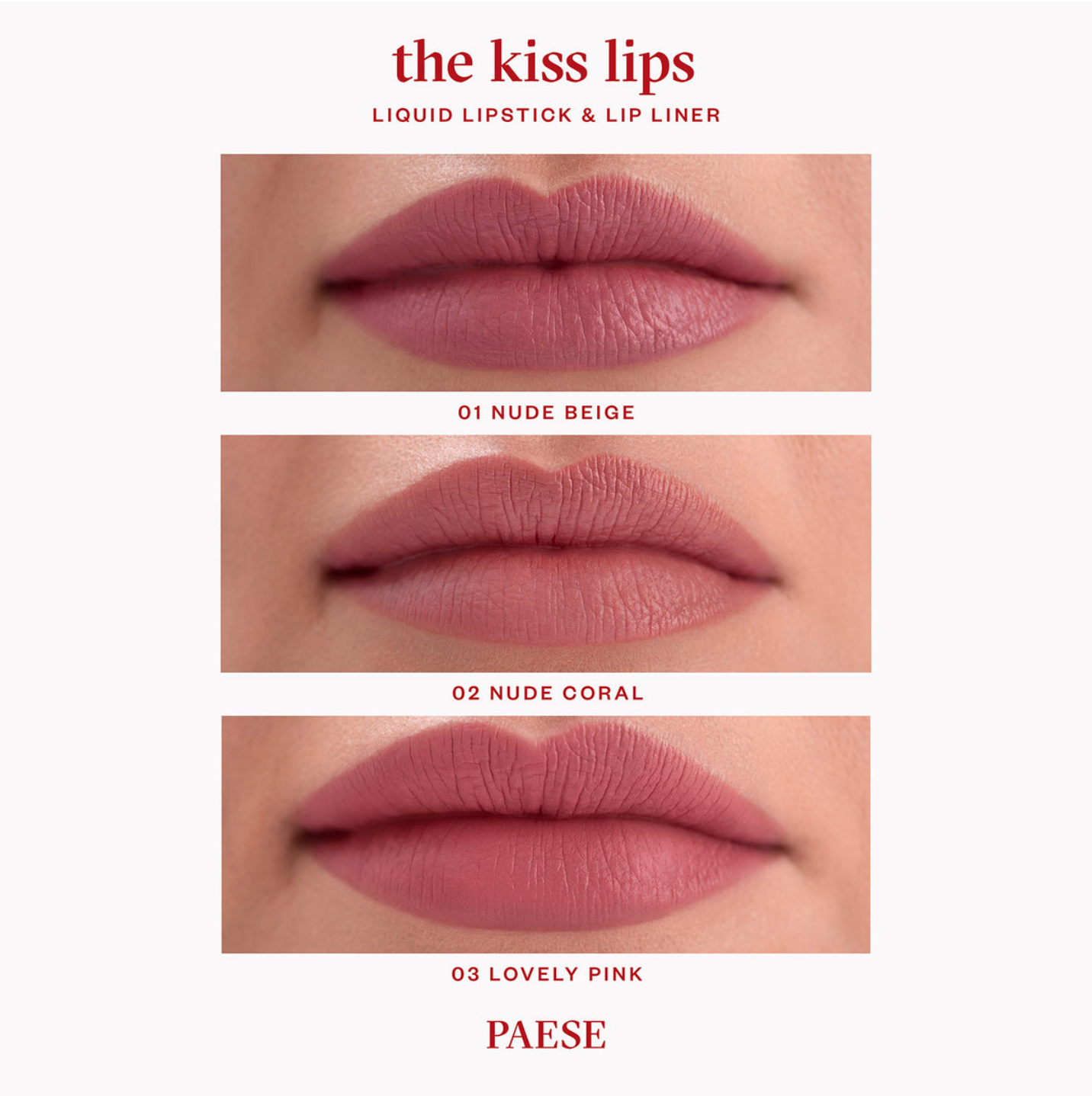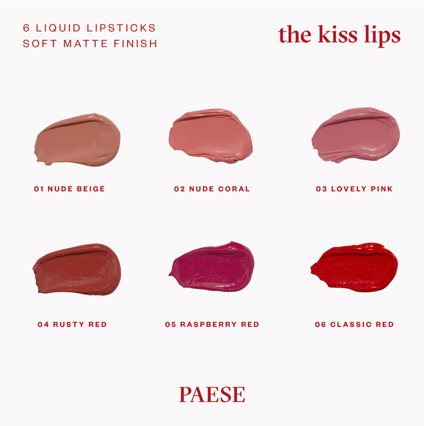 Колекція The Kiss Lips від Paese містить 6 трендових відтінків рідких помад, які ідеально гармоніюють з 6 відповідними олівцями. Вона допоможе вам реалізувати свій стиль та створити неповторні образи з продукцією Paese.
