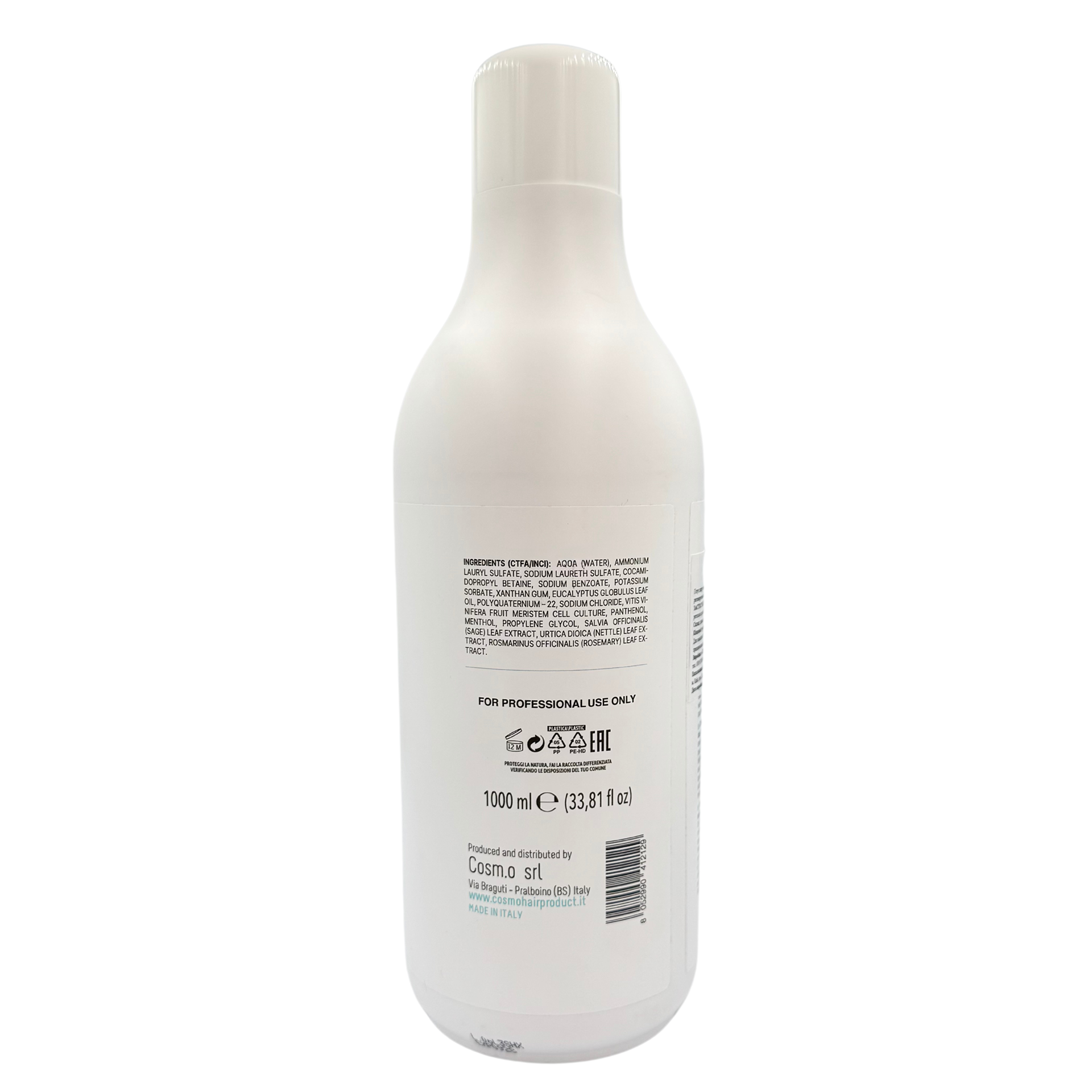 Укріплюючий шампунь проти випадіння волосся з виноградними стовбуровими клітинами, маслом евкаліпта, екстрактом шавлії, екстрактом кропиви, екстрактом розмарину і ментолом.