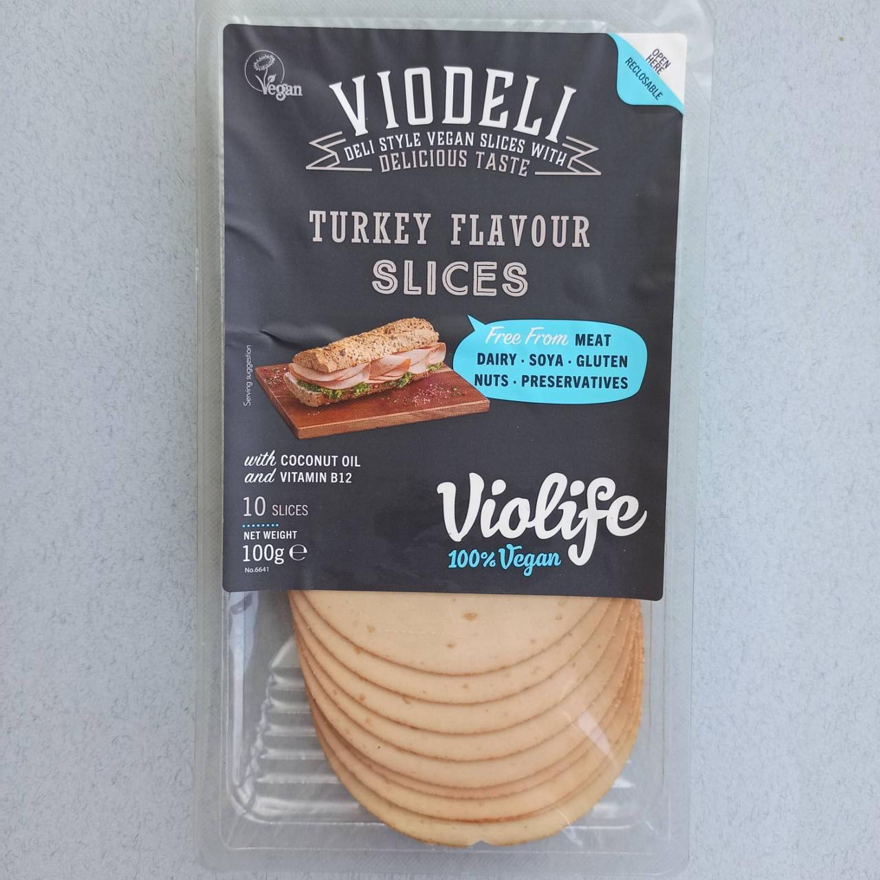 Вони ідеально пасують для сніданків, перекусів, та приготування ваших улюблених страв. Виготовлені з високоякісних рослинних інгредієнтів, ці скибочки мають смак та аромат курки, індички чи м'ясної шинки, але при цьому не містять продуктів тваринного походження, сої, глютену, лактози, горіхів і консервантів.