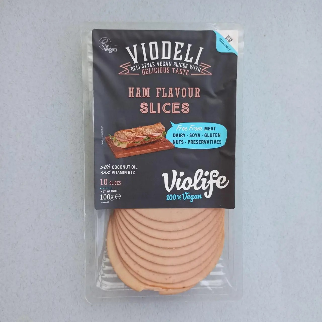 100% рослинний продукт, який є альтернативою шинці. Не містить молочних продуктів, сої, глютену, лактози, горіхів і консервантів. Ідеально підходить для сендвіча, тосту, піци, запіканки або як швидка закуска.