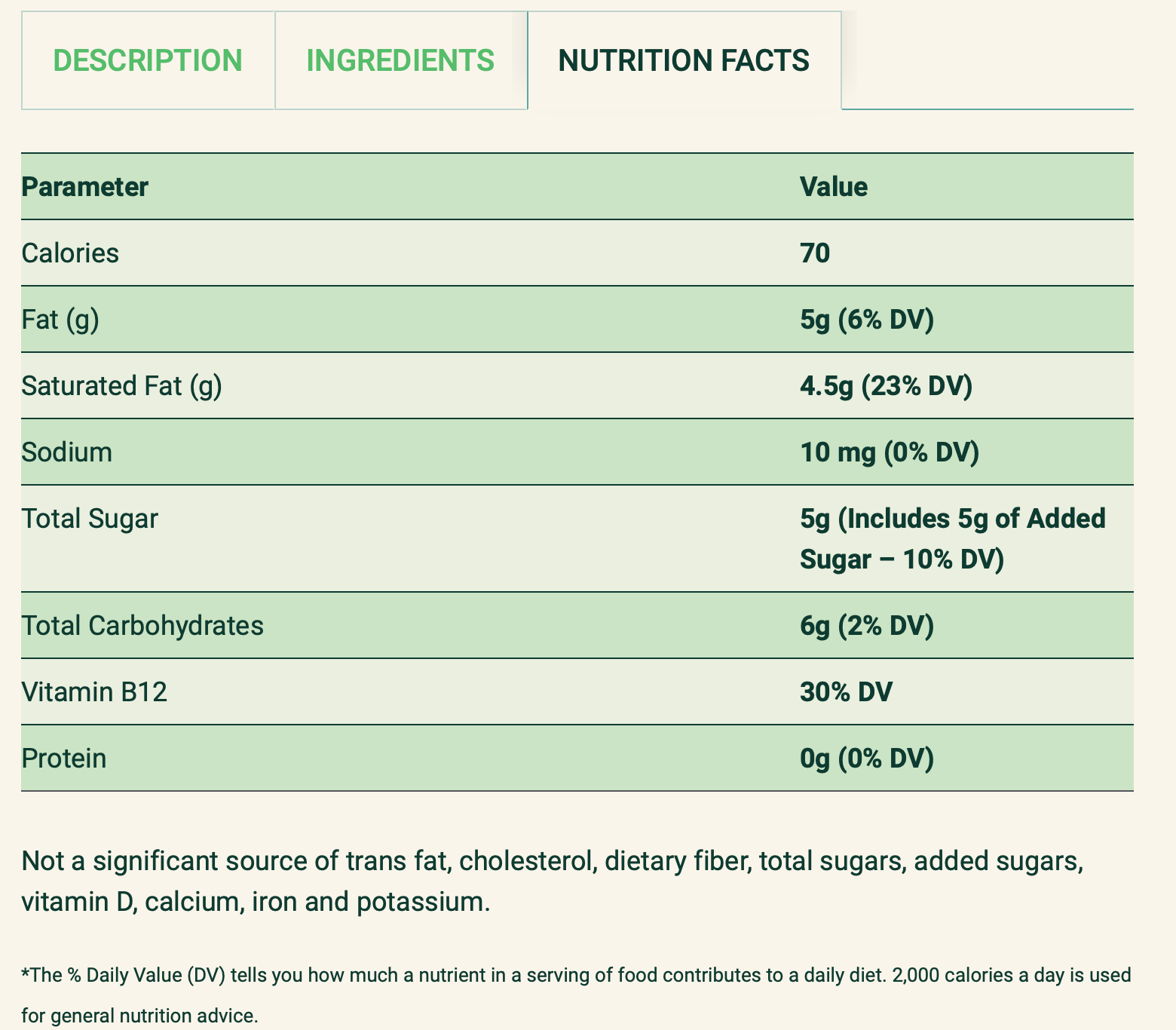 Сіль 1,0 г, кальцій 87 мг (11%**) Вітамін В12 2,5 мкг (100%**),